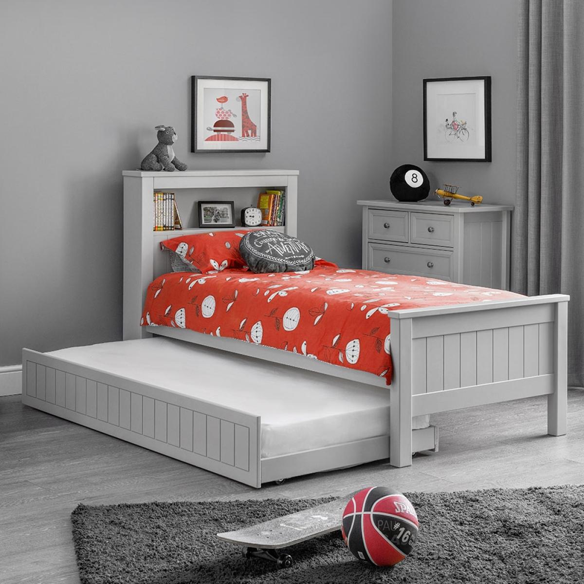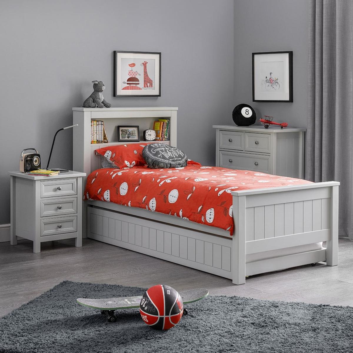 The perfect bed for any budding reader, with the Maine Bookcase Bed from Julian Bowen you can keep all your favourite books close to hand. Manufactured from MDF, the beautiful panelling detail of this Bookcase Bed gives it a timeless finish that will look gorgeous in any room of the house. With two neutral colours to choose from, there will be an option to suit your space and blend seamlessly into your interior style. The headboard, featuring a shelf, is ideal for keeping that evening read within arms reach and with the option to add a trundle bed it's great for sleepovers too!.