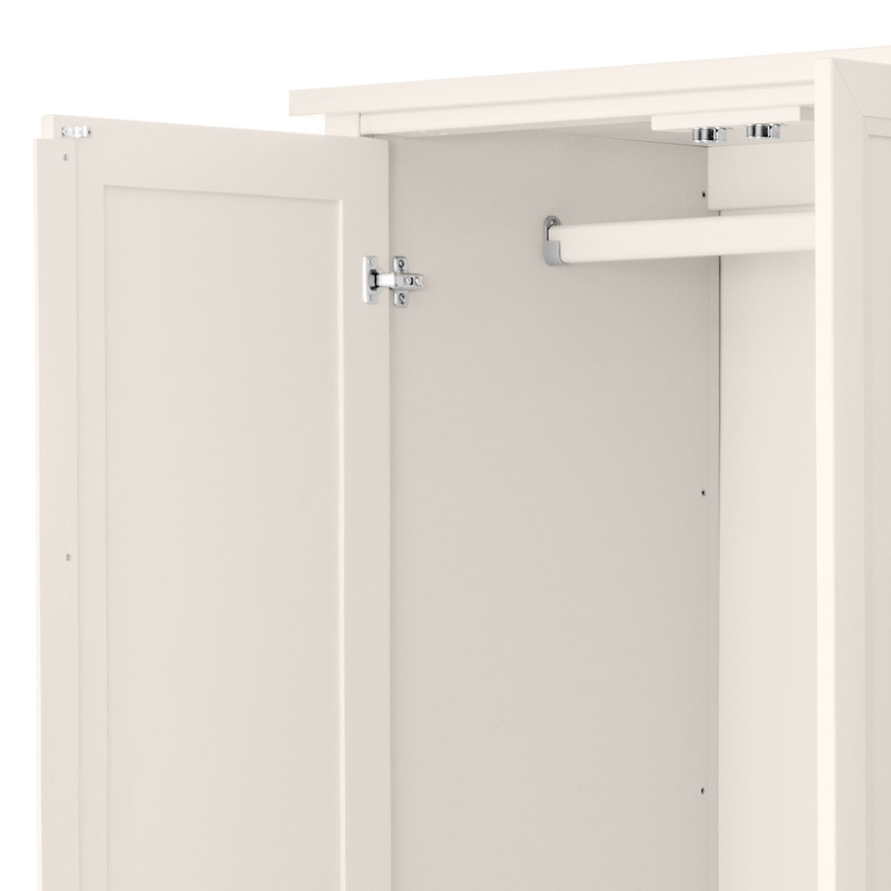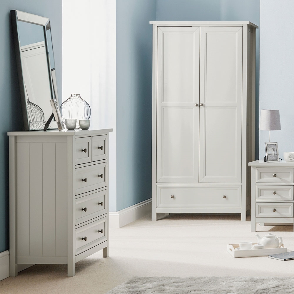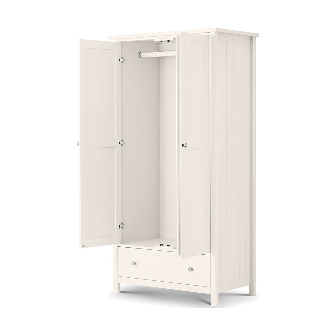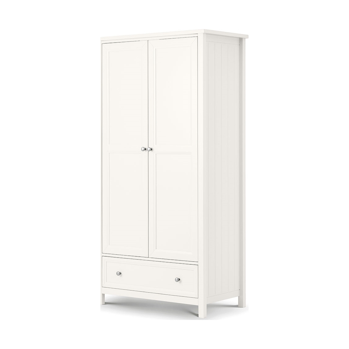 Keep your clothes neat and tidy in the classic styling of the Maine Double Wardrobe from Julian Bowen. Available in a choice of colours with a lacquer finish and beautiful panelling detail at the sides, this wardrobe has a timeless look that will add a touch of class to any bedroom in your home. Featuring a hanging space across the width, your dresses, shirts and trousers can be organised to perfection whilst the drawer beneath could be perfect for extra blankets and cushions. With other pieces available in the Maine collection, why not give your bedroom a complete makeover!.