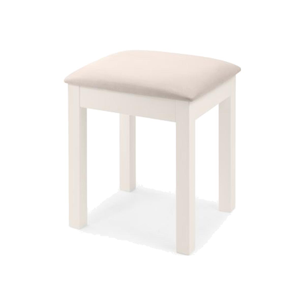 Maine is an elegant New England style range of bedroom furniture. The combination of exquisite surf white lacquered finish with characteristic side panelling and detailed chamfered cabinetry makes for a soothing and refined aesthetic with timeless appeal, while delicate pewter handles add the perfect finishing touch. The Maine Dressing Stool has an upholstered padded seat, the perfect match for the Maine Dressing Table. Surf White lacquered finish MDF wood Upholstered padded seat Dimensions: 48cm (H) x 41cm (W) x 35cm (D) 1 Year Manufacturer's Guarantee