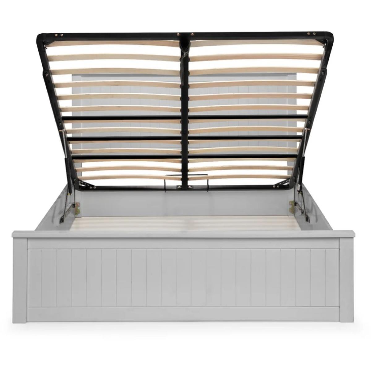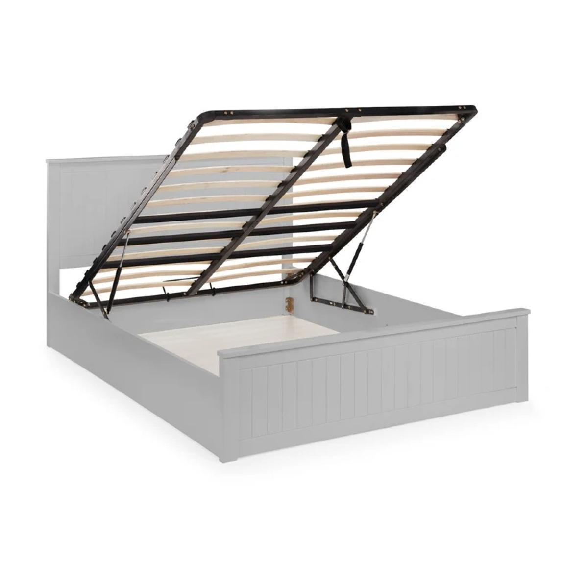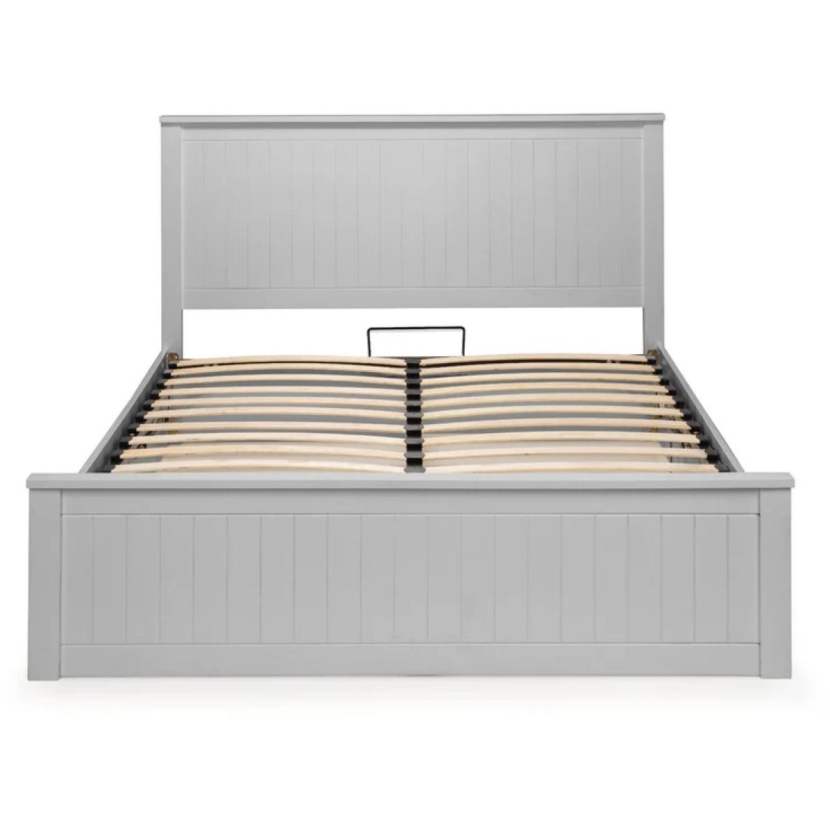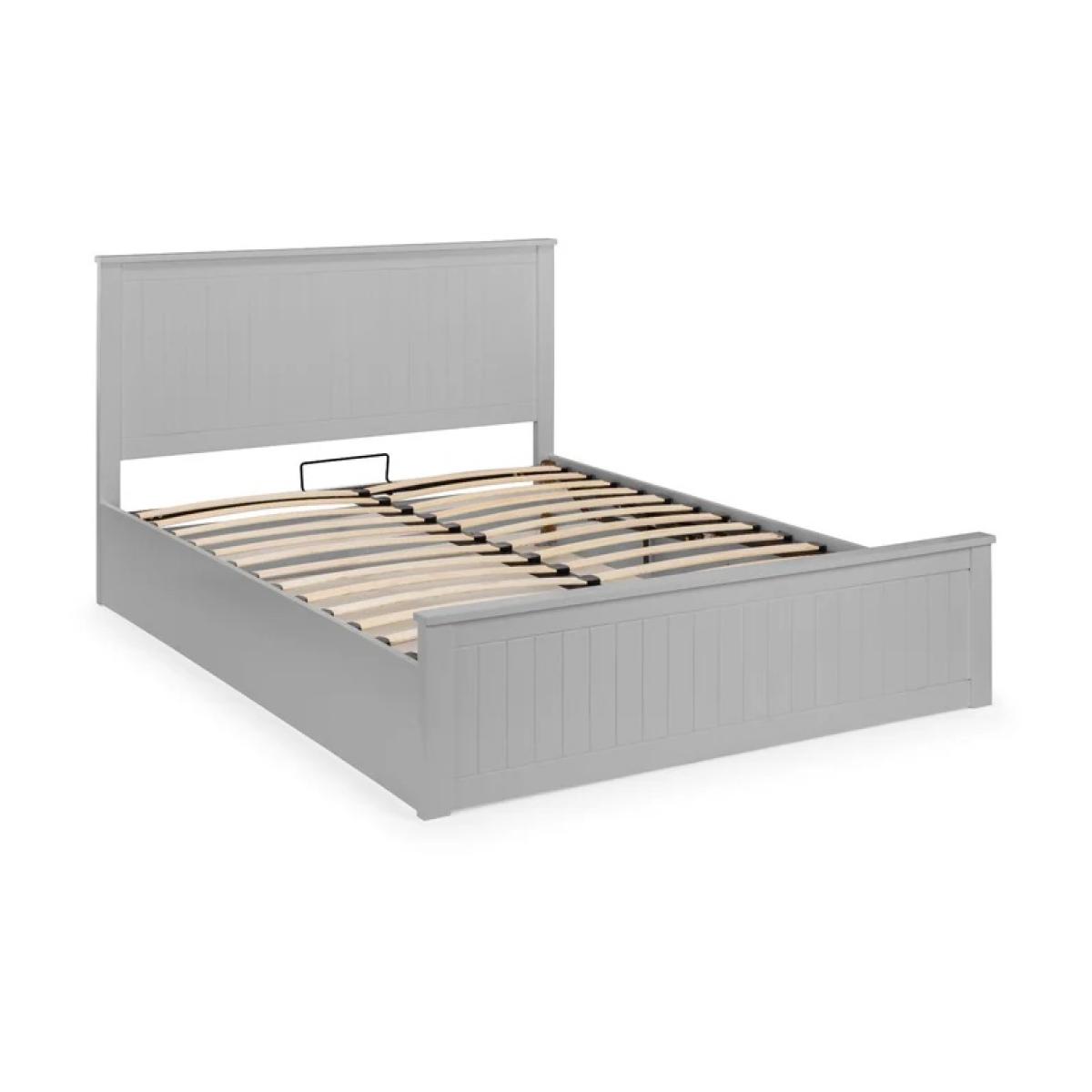 transform your bedroom with the timeless elegance of the Julian Bowen Maine Ottoman Bed in a soft, sophisticated Dove Grey finish. Inspired by traditional New England style, this bed blends shaker-style panelling with clean lines to create a calm, coastal aesthetic that suits both classic and contemporary interiors. But it’s more than just good looks – this ottoman bed is a smart space-saver. With an easy-lift, gas-lift mechanism, the entire mattress base rises smoothly to reveal a generous storage area underneath – perfect for storing extra bedding, seasonal clothes, or just keeping your space clutter-free. Crafted from durable wood and finished in a calming grey hue, the Maine Ottoman Bed offers lasting quality and understated style, making it the perfect centrepiece for any bedroom sanctuary. Features: Elegant shaker-style headboard with a subtle coastal influence Gas-lift ottoman storage – spacious, practical, and easy to access Finished in a neutral Dove Grey to suit a wide range of décor Strong wooden frame for durability and support Available in multiple sizes to fit your space Full assembly required Dimensions: Double: Height 98cm Width 145.5cm Depth 204cm King: Height 98cm Width 161cm Depth 214cm All screens vary in colour reproduction and whilst every effort has been made to display the colour as accurately as possible it is for guidance only.