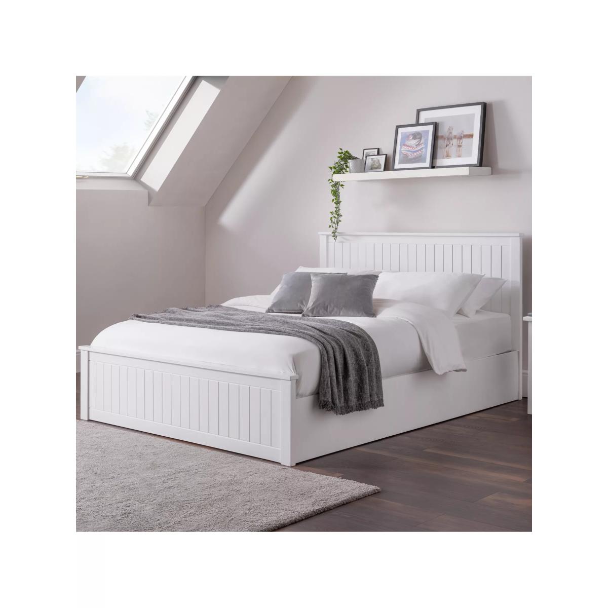 Maine is an elegant New England style range of bedroom furniture. The combination of an exquisite painted finish with characteristic side panelling makes for a soothing and refined aesthetic with timeless appeal. The ottoman lifts easily and provides a large amount of storage, ideal for bedding and other items. With its solid slats, the Maine double bed provides a firmer base for your mattress and makes for a practical and effortlessly stylish addition to your sleep space. Want to see it first? You may want to see and get a feel for the furniture in one of our shops before ordering. We'll be able to tell you where the range you'd like to view is on display.
