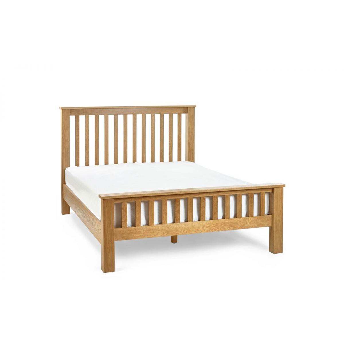 The Julian Bowen Mallory Bedframe brings timeless charm to any bedroom with its elegant high footend and classic design. Crafted from solid oak and oak veneers, it features a warm, natural finish that complements both traditional and modern interiors. With its sturdy slatted base providing excellent mattress support and durability, the Mallory bedframe offers both comfort and style. The high footend adds a touch of grandeur while helping to frame your bedding beautifully. A perfect centrepiece for your sleeping space—reliable, refined, and made to last. Crafted from solid oak and oak veneers, ensuring long lasting durability Simple and stylish design Robust and durable Slatted sleeping base ensuring comfort and prolonged mattress life Part of the Mallory bedroom collection Dimensions Doiuble - Length 208.5cm x Width 148cm x Height 110cm King Size - Length 214cm x Width 163cm x Height 110cm