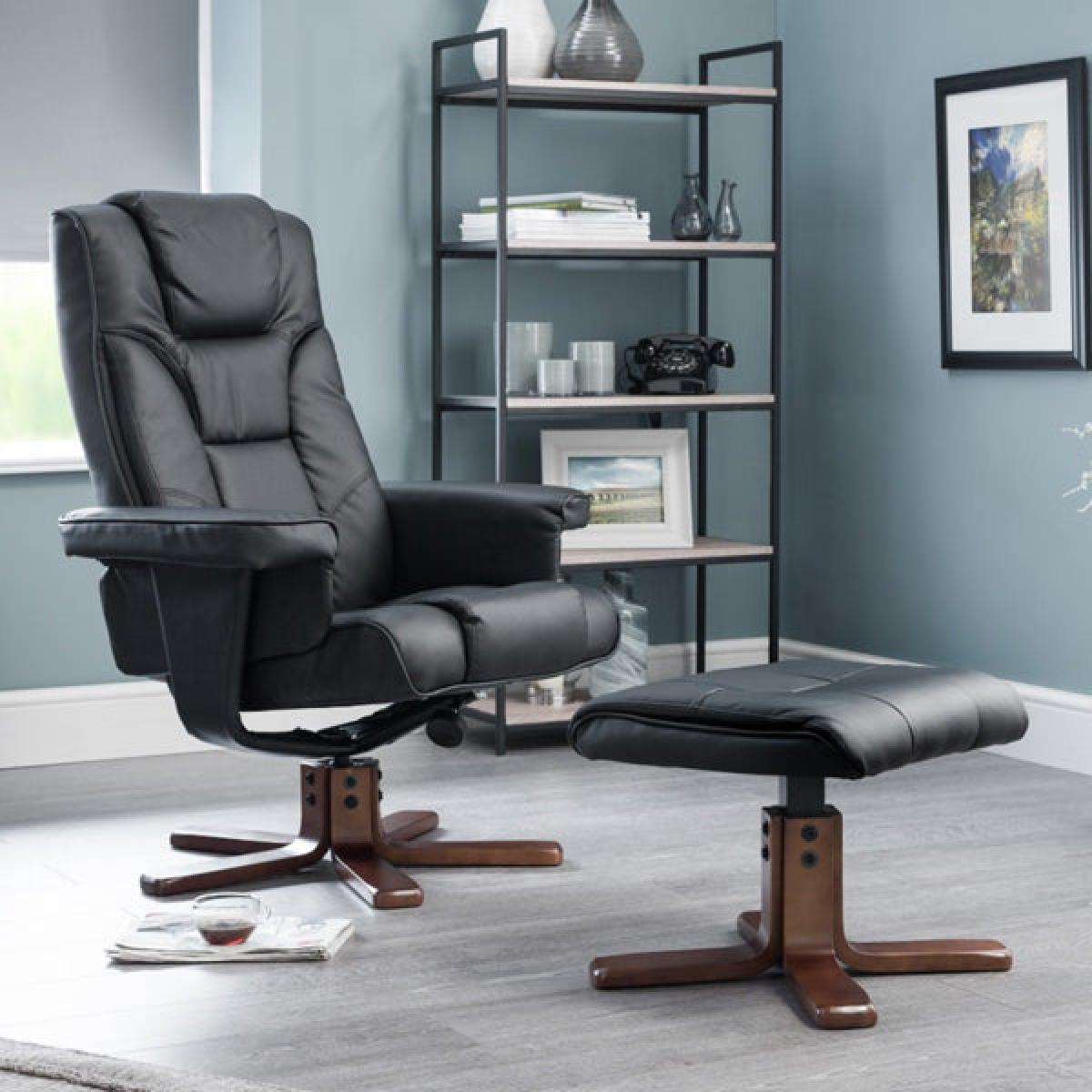 Julian Bowen Malmo Swivel Recliner & Stool Armchair / Black