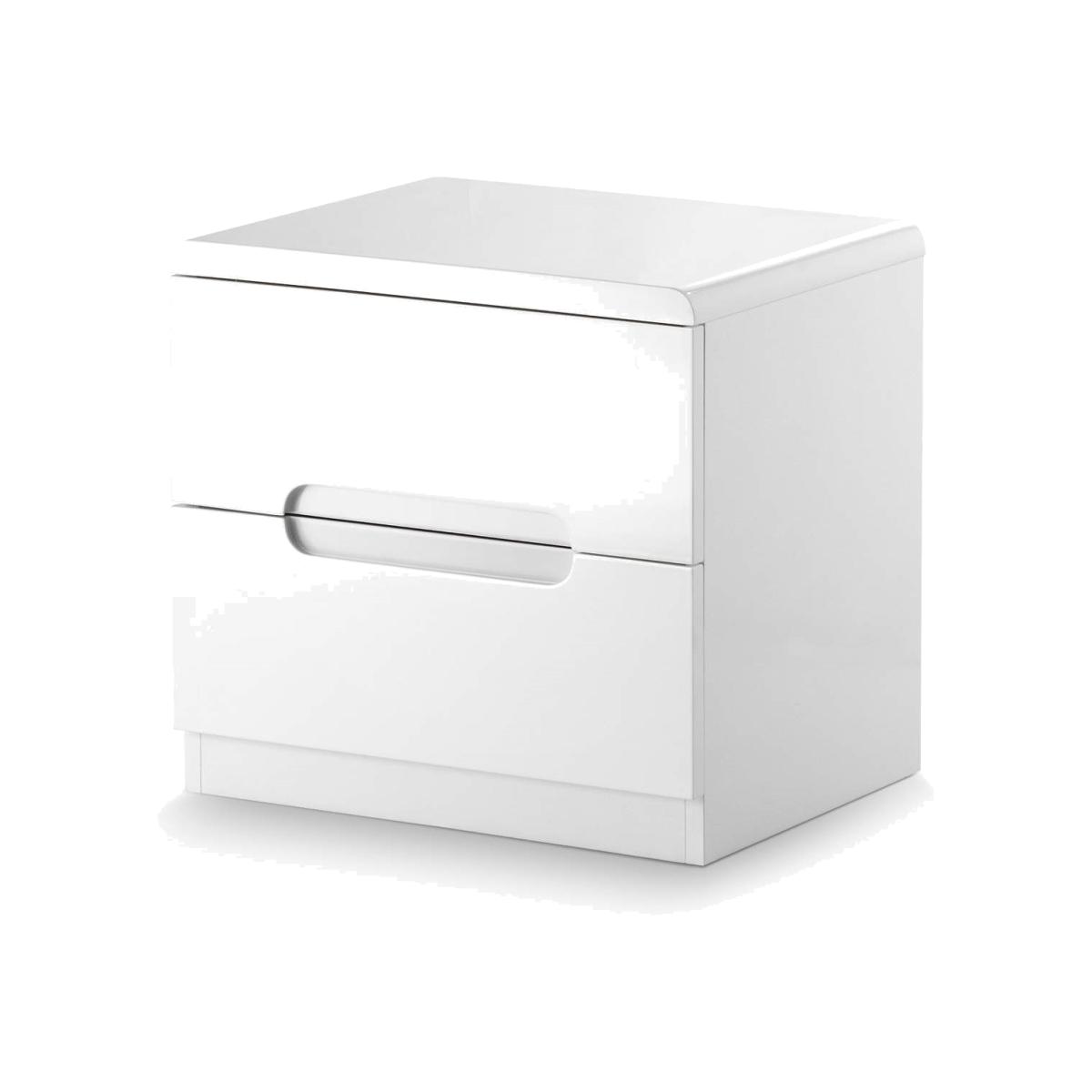 . This modern ultra-chic bedside table features two spacious drawers and is finished in a stunning white high gloss lacquer to complete any contemporary bedroom design. DIMENSIONS. H43 x W45 x D35 cmDRAWE. R DIMENSIONS. H8 x W36.5 x D28.5 cm FEATURES. Fresh contemporary style High quality design and; finish. Sleek high gloss white lacquered finish2 Drawers Stylish recessed drawer handles. Neat and; compact shape. Coordinating items available. Part of the Manhattan range..