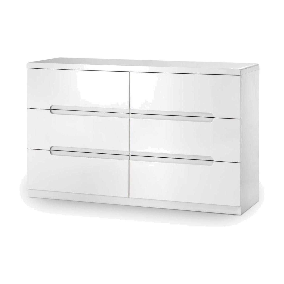 . With its clean and contemporary design this wide chest of drawers from the Manhattan range is a versatile choice for any number of home interior styles. The six drawers provide ample space while the recessed handles enable easy opening and complement the overall style. DIMENSIONS. H80.5 x W131 x D40 cmDRAWE. R DIMENSIONS. H14.5 x W57.5 x D33.5 cm FEATURES. Fresh contemporary style High quality design and; finish. Sleek high gloss white lacquered finish6 Drawers Stylish recessed drawer handles. Coordinating items available. Part of the Manhattan range..