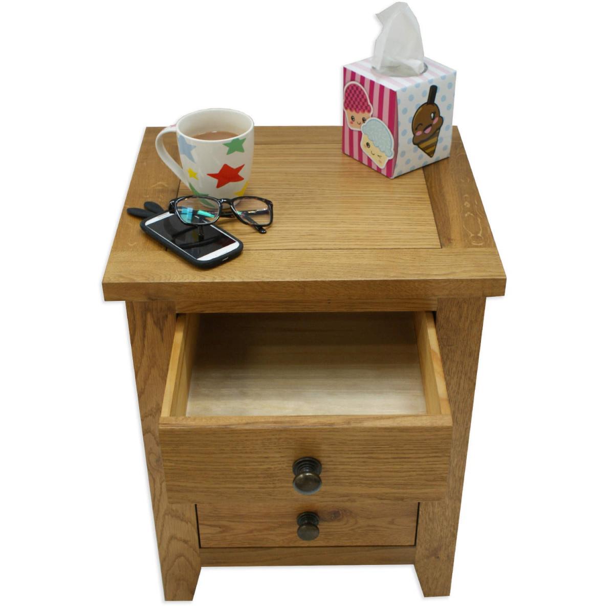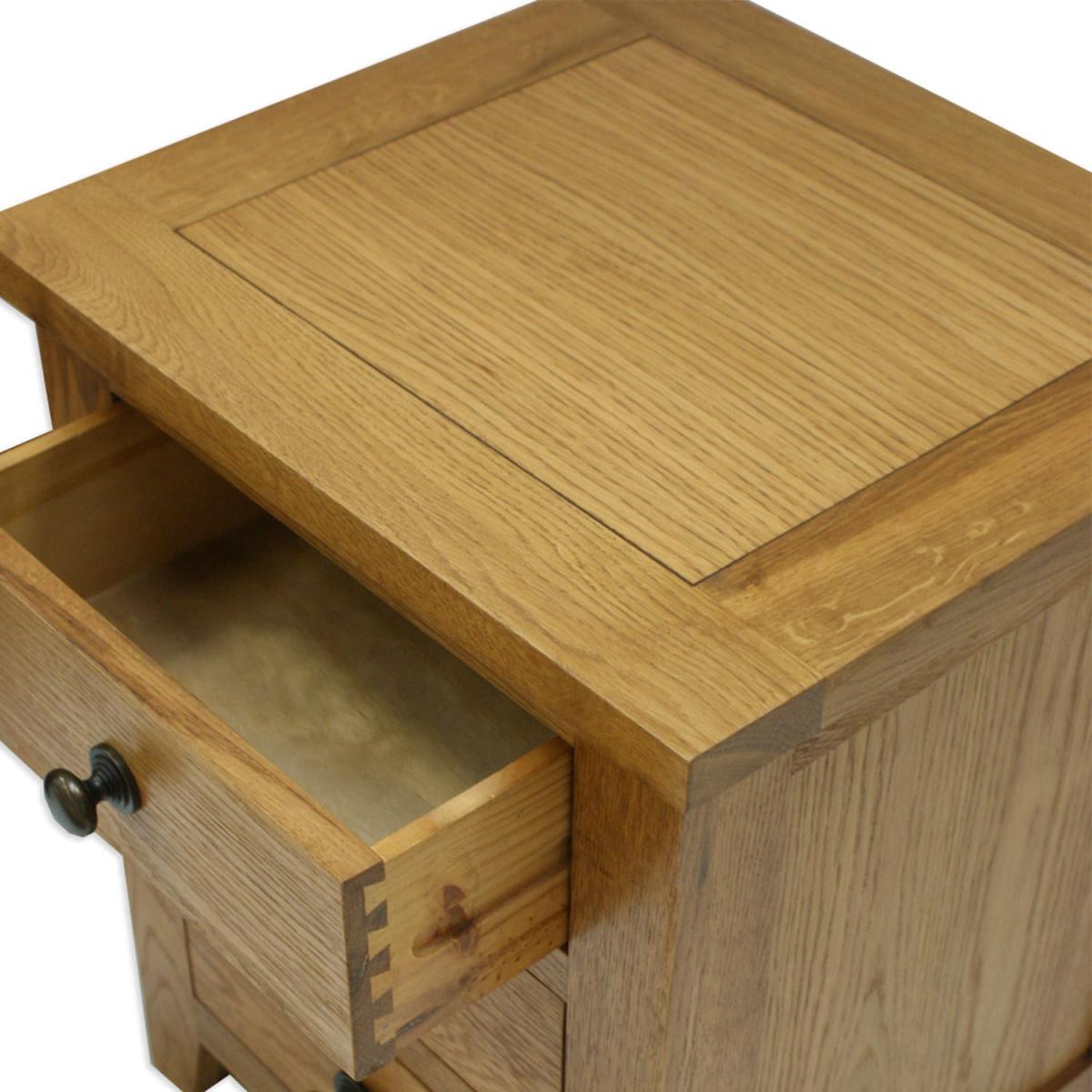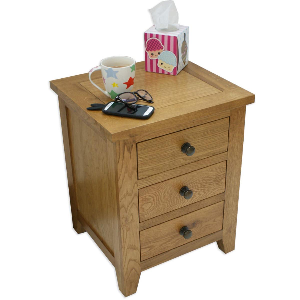 . Solid classic and fully assembled! The Marlborough bedside table has a timeless design which will compliment a variety of spacesDIMENSION S. W48 x D44 x H60 cm FEATURES. 3 Drawers on smooth wooden runners. Spacious square top perfect for essentials. Spacious surface top. Crafted from solid American oak. Beautiful waxed finish. Classic design Versatile style suiting many decors. Round metal handles. Coordinating items available HOW BIG AM I? The Marlborough bedside table has an ideal design to fit your bedside needs. With a compact shape the bedside table fits beautifully. The spacious square top is perfectly sized for all your necessities such as your lamp phone and the dreaded alarm clock. The drawers give you ample space to store away all your essentials such as your night time read. HOW DO I LOOK? Homely waxed oak combined with solid shapes creates a chunky timeless design. The solid American oak has a beautiful wood grain which is complimented by the simple metal handles. The Marlborough bedside table exudes effortless quality. WHAT AM I MADE OF? This bedside table from Julian Bowen is crafted from solid American white oak and finished with beautiful oak veneers. These high quality materials ensure that your item will stand the test of time. TREAT ME RIGHT Looking after your new item is very simple. To maintain a clean dust free finish simple wipe down with a dry duster and for tougher marks a damp cloth is ideal. Julian Bowen advise against the use of harsh chemicals and cleaners. HOW EASY AM I TO PUT TOGETHER? It really couldn't be any simpler! Just carefully open up your box and your bedside table is already assembled! The only thing you will need to do is fit the drawer handles all you will need is a screwdriver .