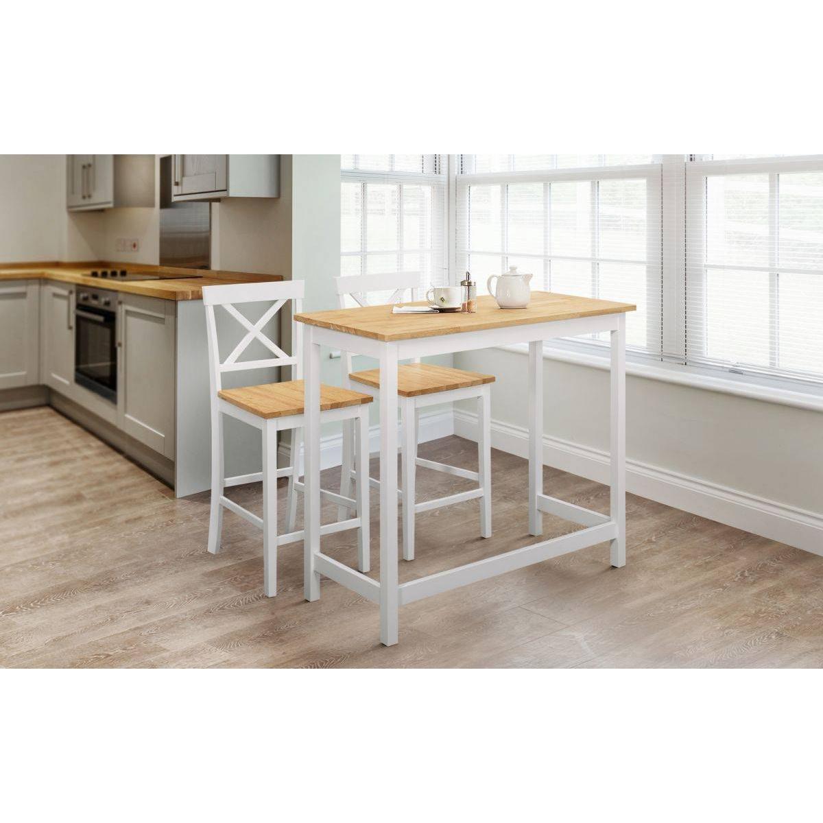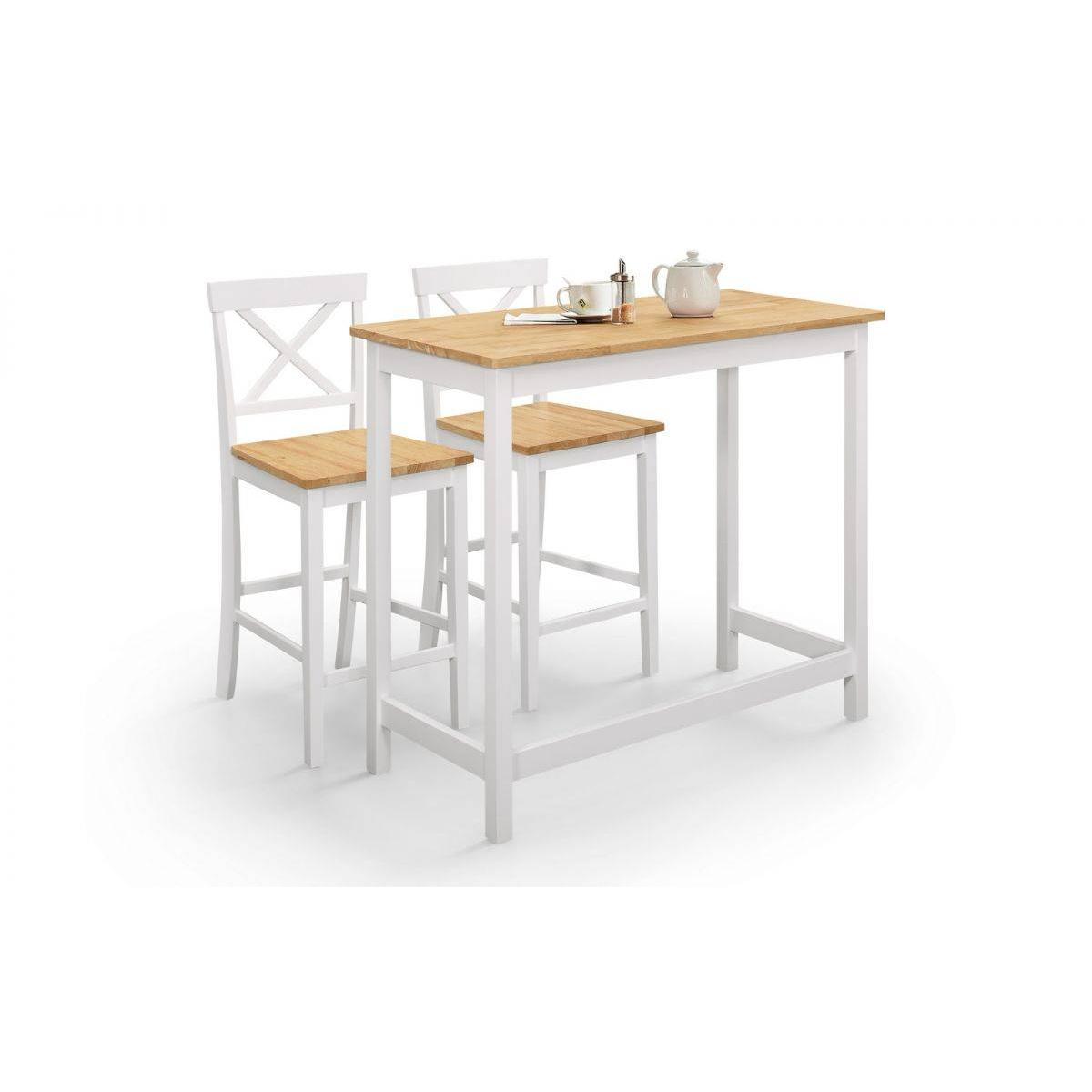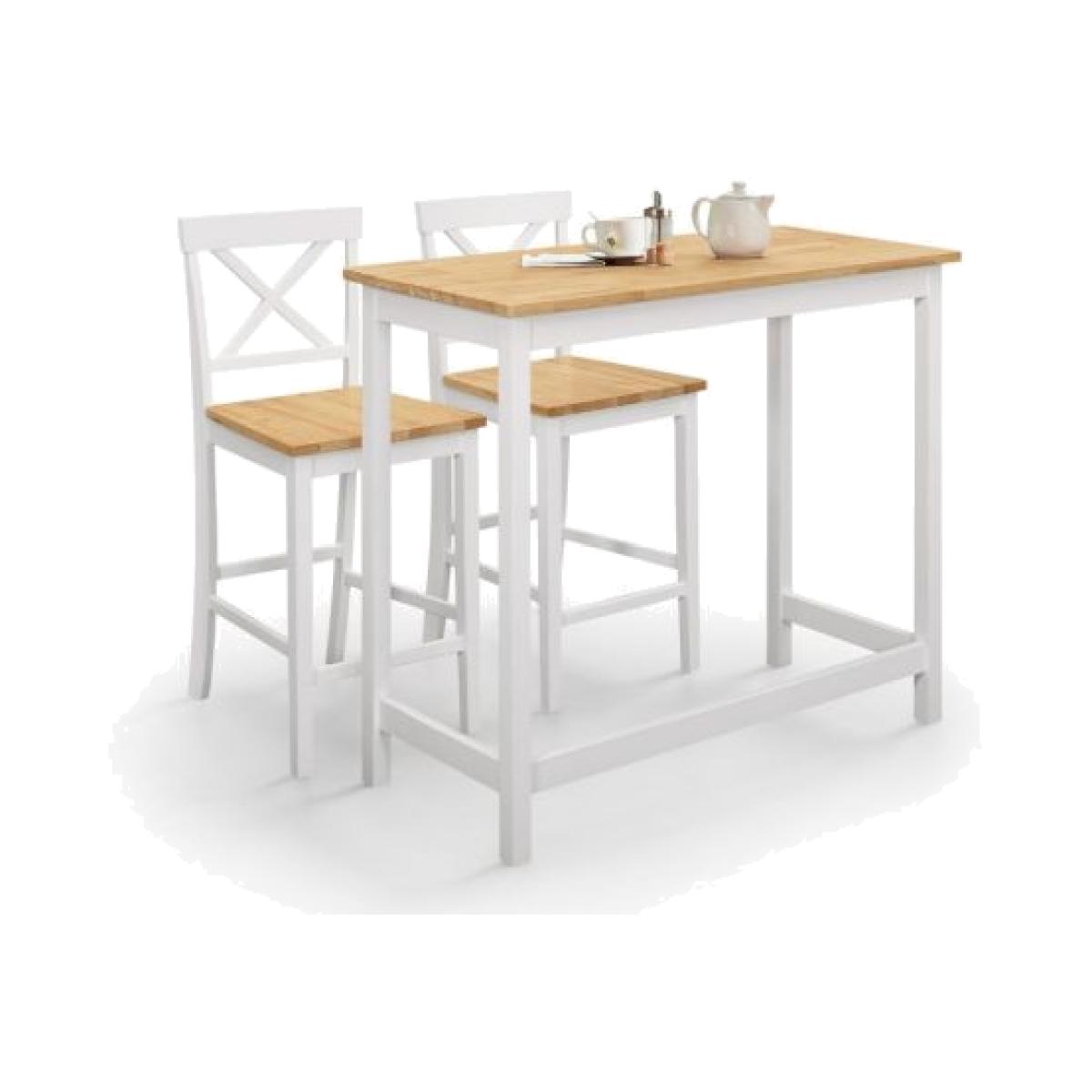 The Marlow Bar Set features a classic, timeless design to complement any decor. Constructed from rubberwood, the oak coloured table top contrasts with the Ivory lacquered base creating a homely, yet stylish feel. Accompanied by a matching pair of cross back bar stools with wooden style seats, adding country style elegance to your home. Assembly required. Please note, this product is an online exclusive and is not available to view in any of our stores.