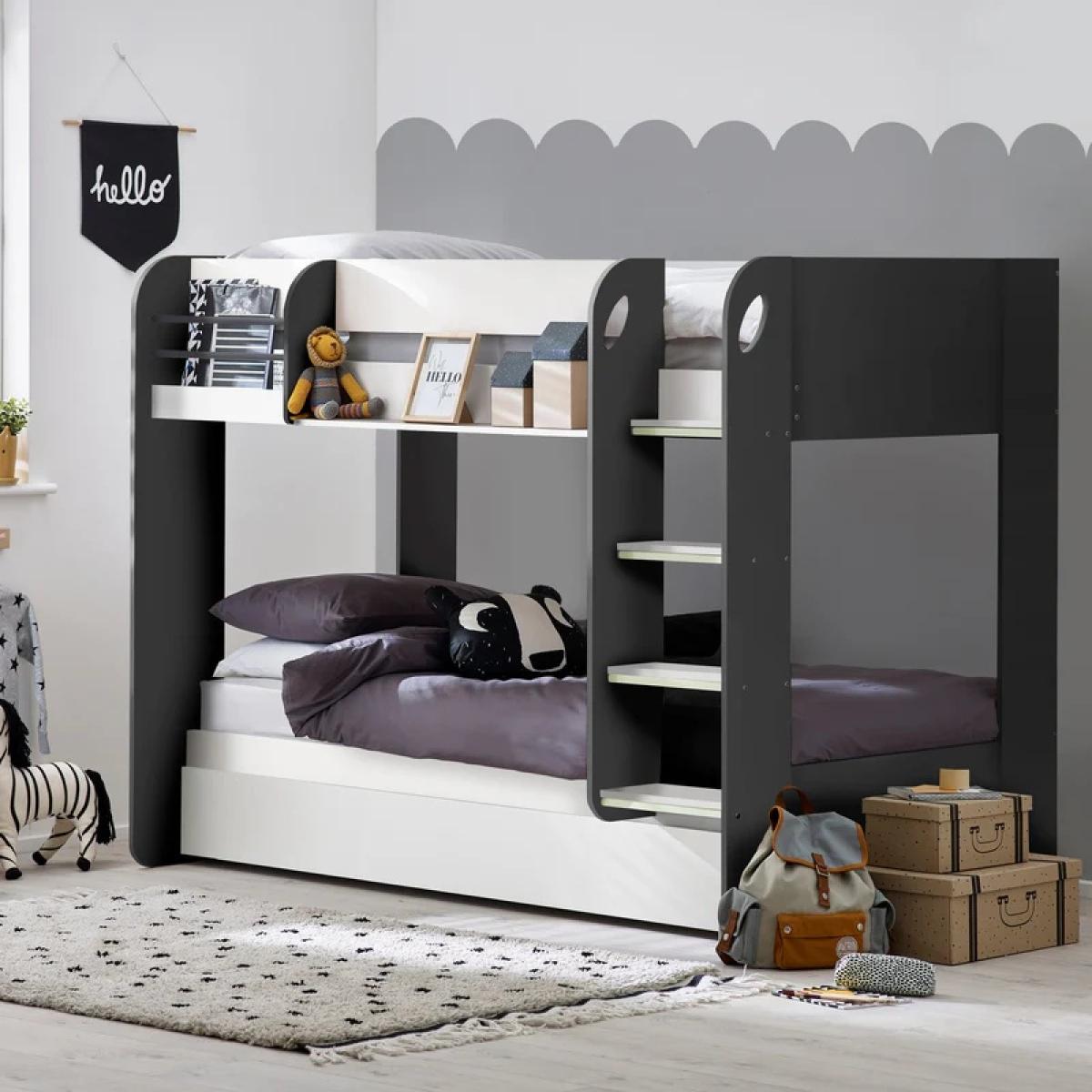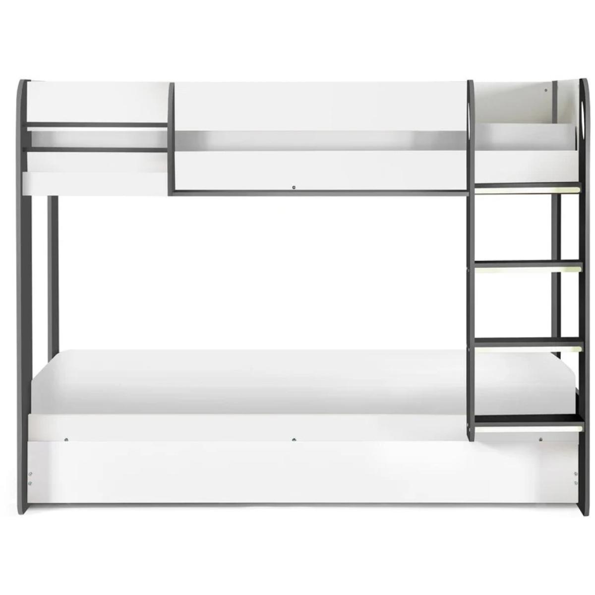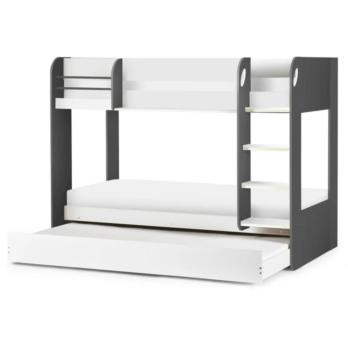 Stylish, space-saving, and ideal for growing families, the Julian Bowen Mars Bunk & Underbed in Charcoal & White is a smart addition to any modern child's or teenager's bedroom. Designed with practicality in mind, this versatile bunk bed features a clean, two-tone finish that effortlessly complements both contemporary and classic interiors. The sturdy bunk includes a pull-out underbed, perfect for sleepovers or accommodating overnight guests, while integrated shelving at each sleeping level provides convenient storage for books, toys, or nighttime essentials. Built with safety and durability in mind, the Mars Bunk combines solid construction with sleek design to create a comfortable and functional sleep space. Features: Contemporary charcoal & white two-tone finish Integrated shelves for accessible storage on both bunks Pull-out underbed ideal for guests or additional sleeping space Durable and safe design, suitable for children and teens Space-saving solution for shared or compact bedrooms Home Assembly Required Dimensions: Height 151cm Width 116.4cm Depth 196cm All screens vary in colour reproduction and whilst every effort has been made to display the colour as accurately as possible it is for guidance only.