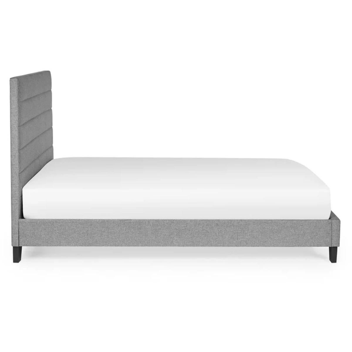 Modern elegance meets everyday comfort with the Julian Bowen Merida Bed in Grey. Upholstered in a soft-touch grey fabric, this stylish bed frame features a clean, minimalist design that blends seamlessly with both contemporary and classic bedroom interiors. The Merida's gently curved headboard adds a touch of sophistication, while the sturdy wooden slatted base provides excellent mattress support for a restful night's sleep. Finished with sleek black tapered legs, the bed offers a refined yet relaxed aesthetic that complements any décor. Perfect for creating a calm, uncluttered space, the Julian Bowen Merida Bed combines simplicity, durability, and timeless style in one beautifully crafted piece. Features: Horizontal tufted headboard make a stunning impression. Beautiful yet versatile grey linen finish that is perfect for various bedroom styles. Strong slatted base that provides comfort and a prolonged mattress life. Contrasting black feet that gives a modern look. Mattress Not Included Home Assembly Required Dimensions: Single: Height 115cm Width 97cm Depth 203cm Double: Height 115cm Width 144cm Depth 203cm King: Height 115cm Width 157cm Depth 212cm All screens vary in colour reproduction and whilst every effort has been made to display the colour as accurately as possible it is for guidance only.