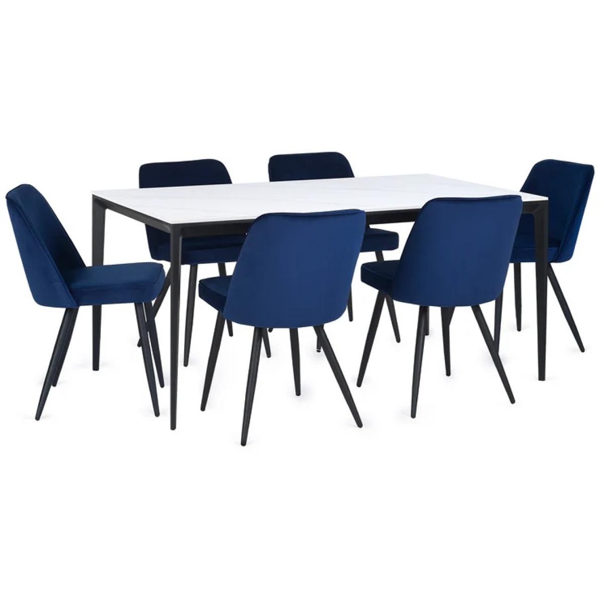 Bring modern elegance into your dining space with the Julian Bowen Miami Rectangular Stone Top Dining Table - White Marble Featuring a sleek rectangular design, this statement piece combines a striking white marble stone top with a contemporary polished stainless steel base. The smooth marble finish not only adds a touch of luxury but also ensures durability and easy maintenance, making it perfect for both everyday dining and special occasions. Generously sized, the Miami table comfortably seats up to six guests, offering the ideal blend of style and practicality. Whether paired with upholstered dining chairs for a sophisticated look or minimalist seating for a modern vibe, this table becomes the centrepiece of any home. A fusion of timeless materials and bold design, the Miami Dining Table is crafted to elevate your dining experience with refined sophistication. Features: Embraces modern luxury and timeless elegance for refined dining. A white marble sintered stone top that infuses the dining space with subtle, distinctive charm. Metal frame with sleek black legs combines sturdy support with a contemporary edge. Elevate your dining moments in style with the perfect fusion of sophistication and modernity. Exquisite materials and contemporary design create a lasting touch of luxury to your dining experience Assembly Required Dimensions: Height 76cm Width 120cm Depth 80cm All screens vary in colour reproduction and whilst every effort has been made to display the colour as accurately as possible it is for guidance only