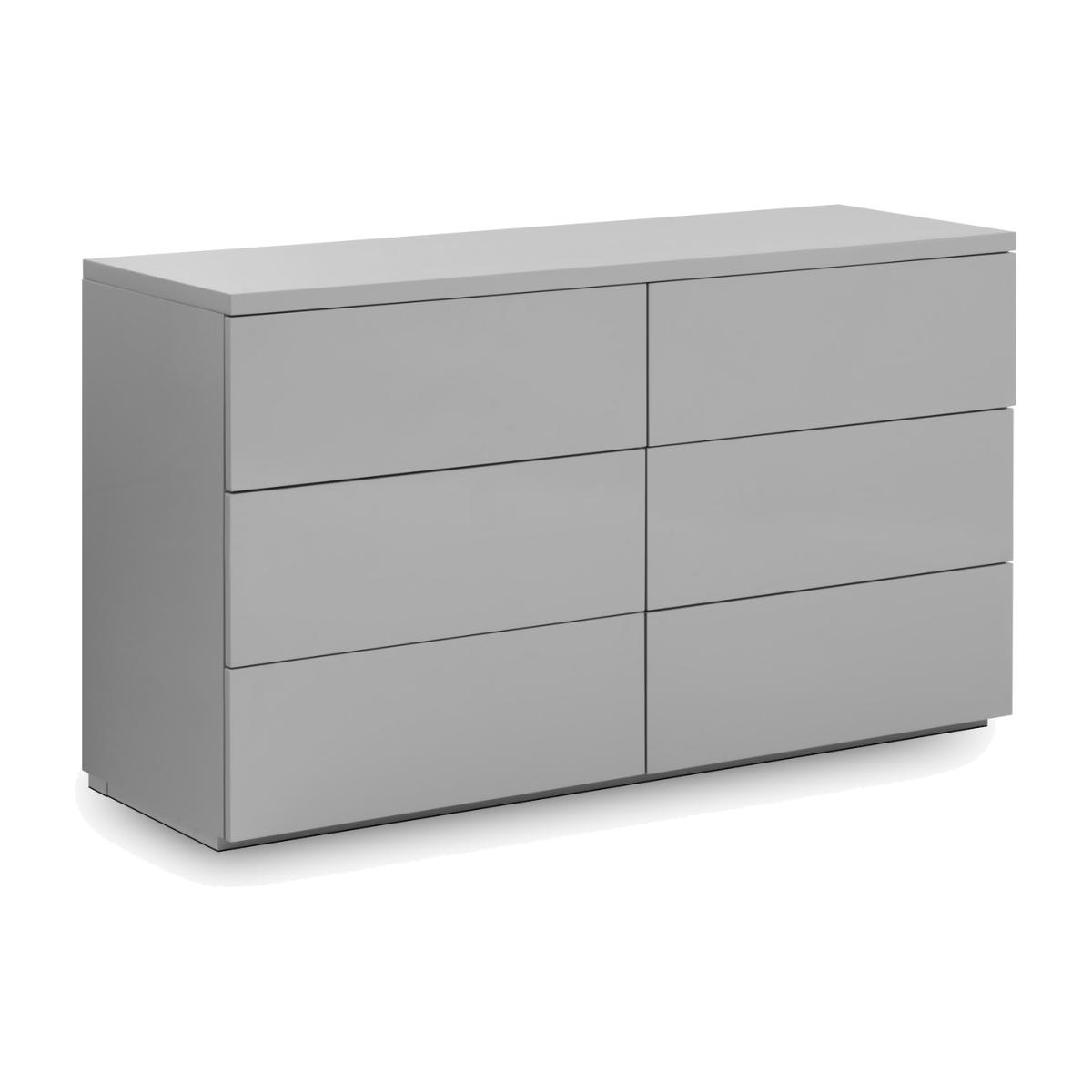 The Monaco Bedroom Collection brings a fresh, modern design to any bedroom. Finished in a grey high gloss, this 6 drawer wide chest reflects light, enhancing the look of space. Featuring clean lines, to create a clean contemporary image. Part of the Julian Bowen Monaco Bedroom Collection.