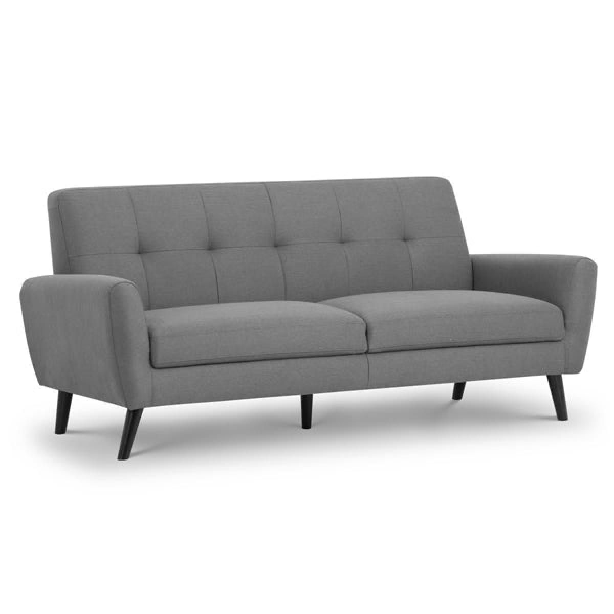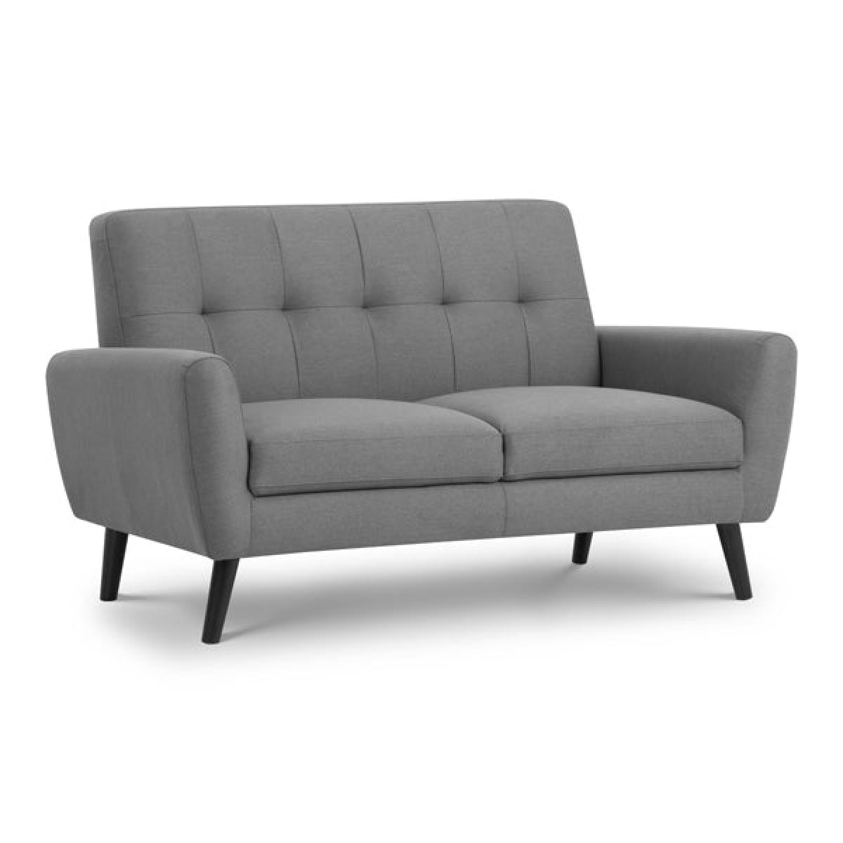 The Monza Two-Seater Sofa is compact and stylish with retro Scandinavian design influences. It is impeccably tailored in a smart, grey linen fabric. Monza has a seat that is deeper than most similarly sized sofas, and is consequently incredibly comfortable. Its clean lines and slick design make it a real focal point for any modern living space. Part of the wider Monza upholstery range from Julian Bowen. H: 83 x W: 146 x D: 81 cm. H: 83 x W: 192 x D: 81 cm.