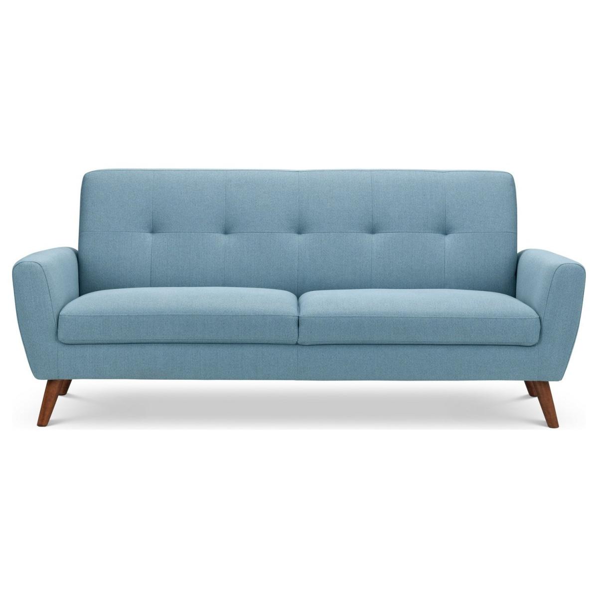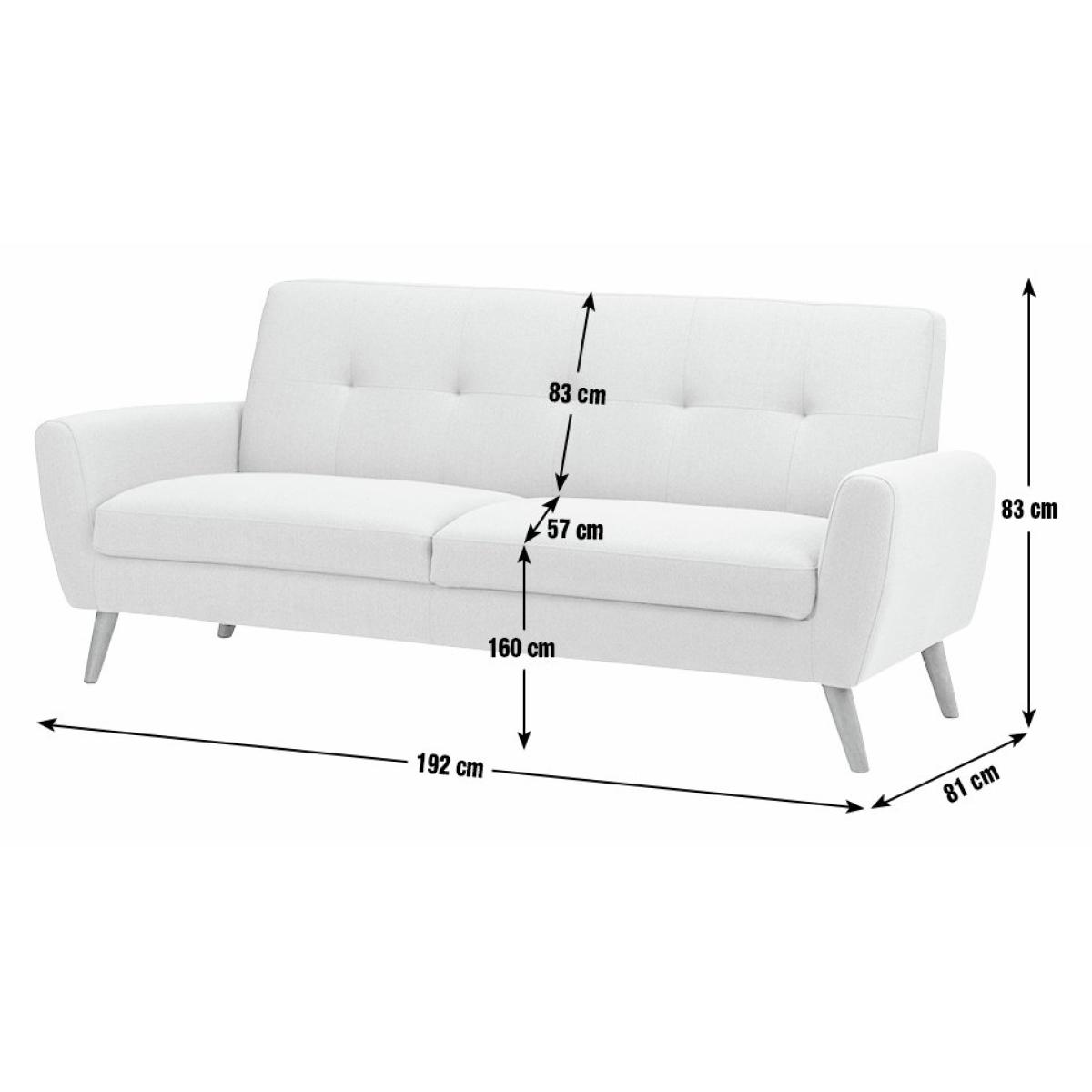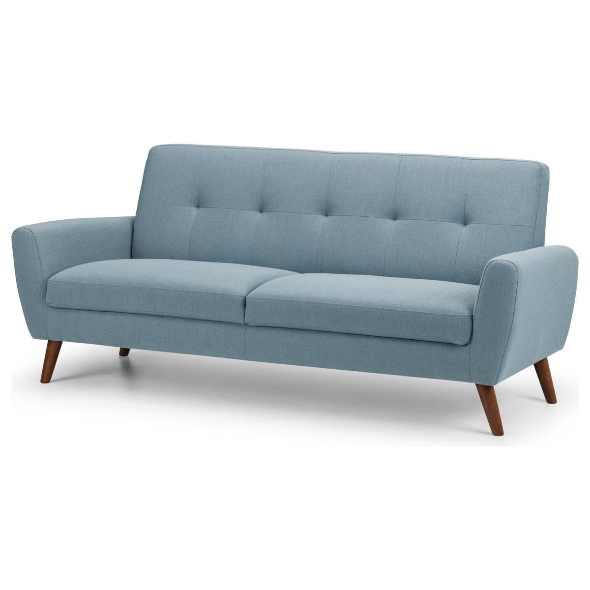 The Monza 3 Seater Sofa is compact and stylish with retro Scandinavian design influences. It is impeccably tailored in a smart, blue linen fabric. Monza has a seat that is deeper than most similarly sized sofas, and is consequently incredibly comfortable. Its clean lines and slick design make it a real focal point for any modern living space. Part of the wider Monza upholstery range from Julian Bowen. Part of the Monza collection. Material: Made from 100% polyester. Wooden feet. Fixed seats with foam filling. Fixed cushion(s) with foam filling. Dimensions: Size H83, W192, D81cm. Floor to seat height: 160cm. Depth of seat: 57cm. Height of seat back: 83cm. Width of seating area between arms: 192cm. Weight 42kg. Wipe clean or lightly vacuum. Minimal assembly - just add feet. Maximum individual user weight 114kg. Packaged dimensions: Package size H194, W77, D42cm. General information: Manufacturer's 1 year guarantee.