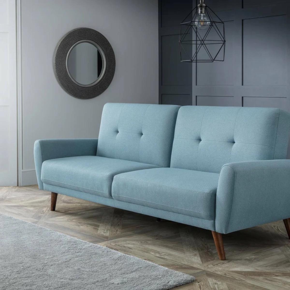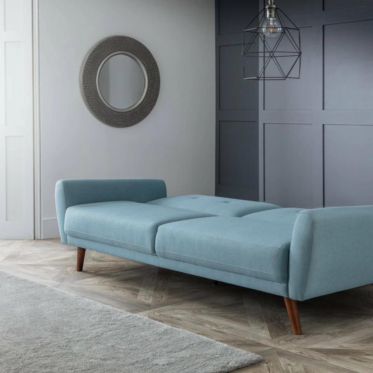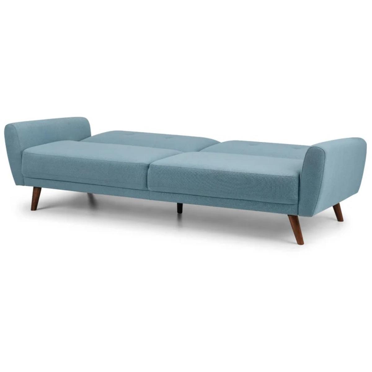 The Julian Bowen Monza Fabric Sofa Bed - Blue is a stylish , highly functional piece with retro Scandinavian design influences. It is impeccably tailored in a smart, blue linen fabric. Monza has a seat that is deeper than most similarly sized sofas, and is consequently incredibly comfortable. The Sofabed's split back folds down easily to form a large, comfortable sleeping surface for two adults. Its clean lines and slick design make it a real focal point for any modern living space. Part of the wider Monza upholstery range from Julian Bowen. Features: Sumptuous Blue Linen Style Fabric. Extremely Comfortable with Perfect Seat Depth. Retro Scandinavian Styling. Independently Acting Backs allow one side to Recline while the other remains Upright. Assembly Required Dimensions: Height 87cm Width 221cm Depth 87cm All screens vary in colour reproduction and whilst every effort has been made to display the colour as accurately as possible it is for guidance only.
