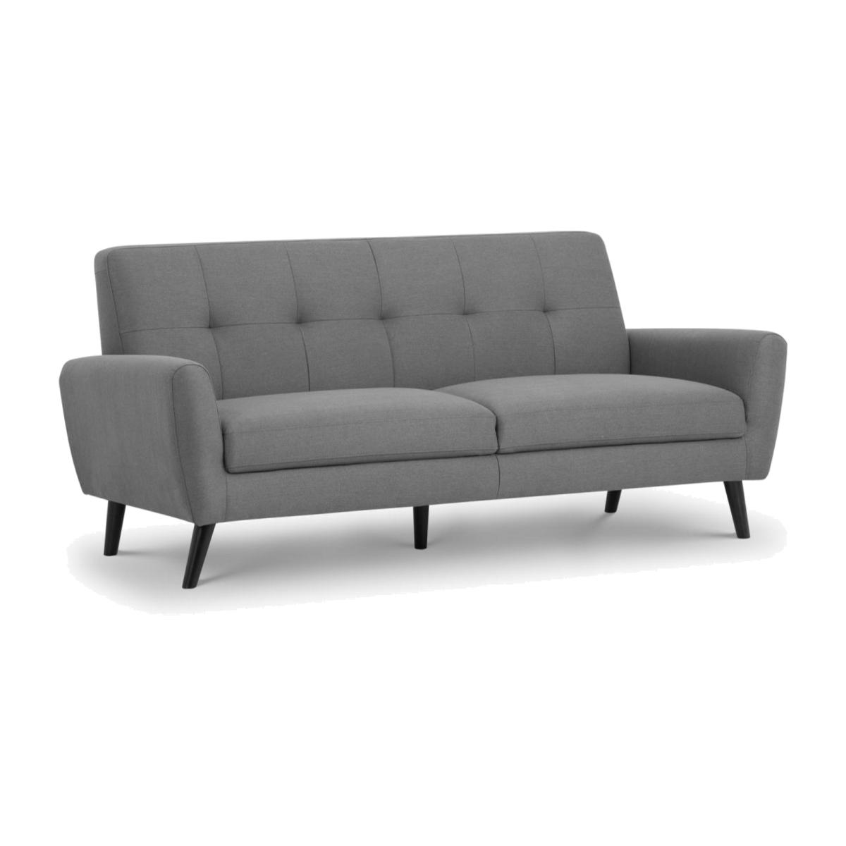 Dimensions H83 x W192 x D81 cm. The Monza Three-Seater Sofa is compact and stylish with retro Scandinavian design influences. It is impeccably tailored in a smart grey linen fabric. Monza has a seat that is deeper than most similarly sized sofas and is consequently incredibly comfortable. Its clean lines and slick design make it a real focal point for any modern living space. Part of the wider Monza upholstery range from Julian Bowen. Features. Sumptuous Mid-Grey Linen Style Fabric. Extremely Comfortably with Perfect Seat Depth. Retro Scandinavian Styling. Clean lines and sleek design creating a focal point for any living space. Depth of seating area - 57cm. Height of back of seat - 50cm. Height from floor to top of seat - 44cm Assembly required..