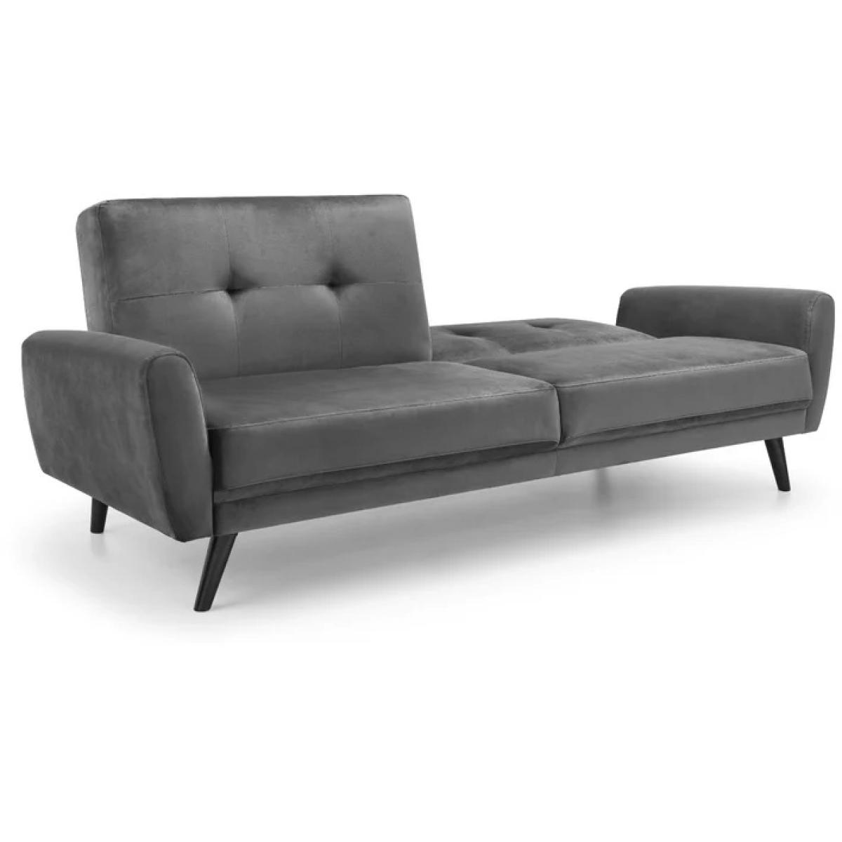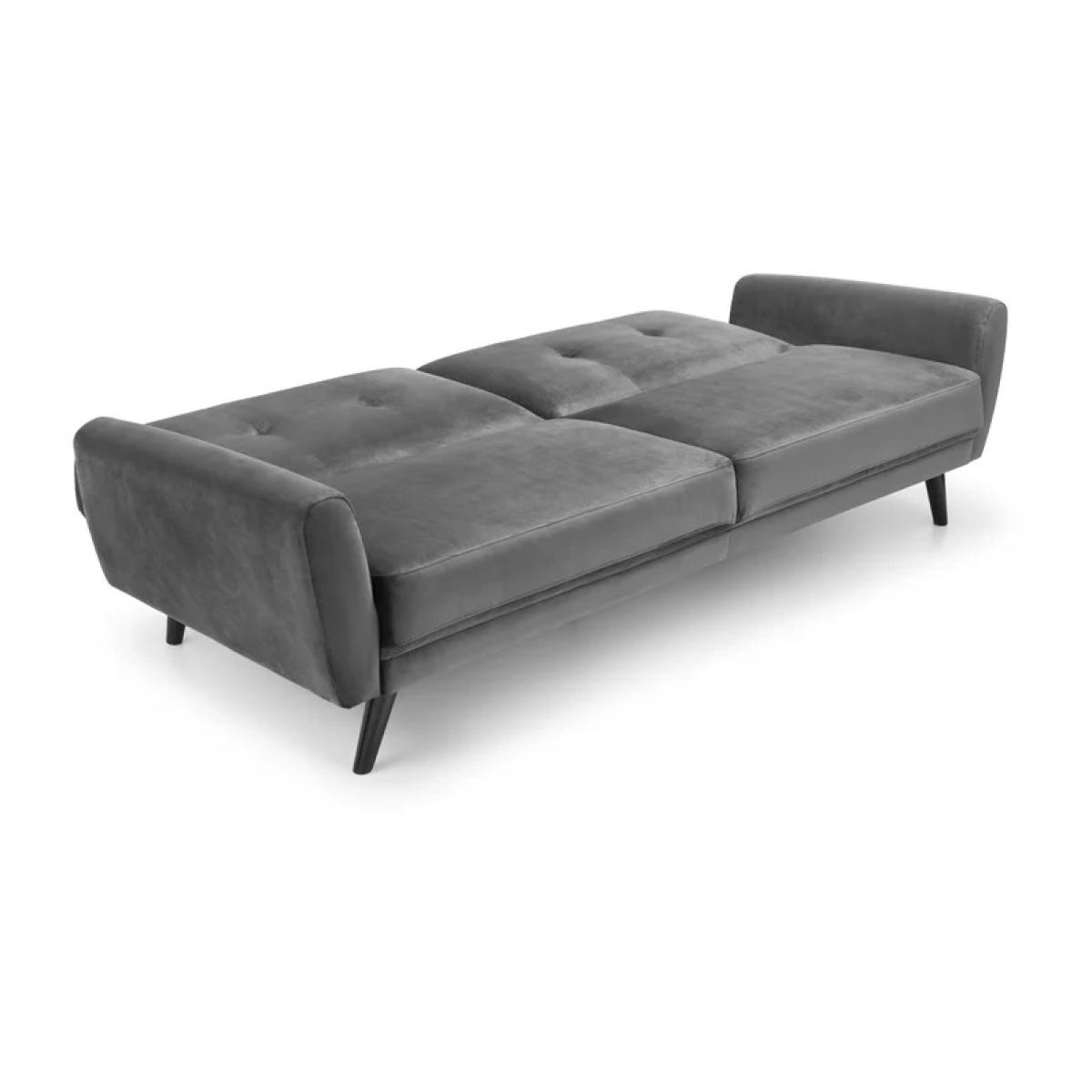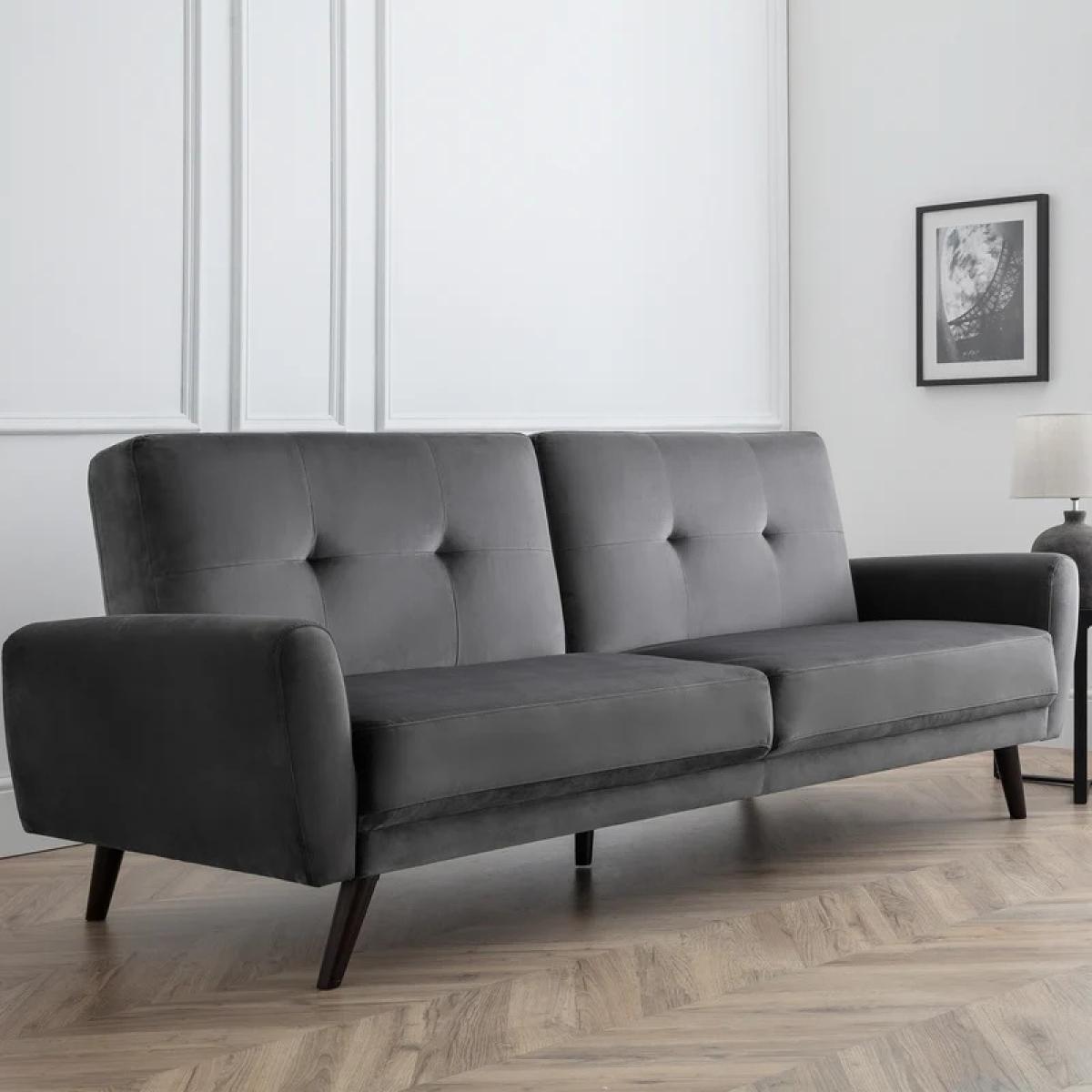 The Julian Bowen Monza Sofa Bed - Dark Grey Velvet is a stylish , highly functional piece with retro Scandinavian design influences. It is impeccably tailored in a smart, dark grey velvet fabric. Monza has a seat that is deeper than most similarly sized sofas, and is consequently incredibly comfortable. The Sofabed's split back folds down easily to form a large, comfortable sleeping surface for two adults. Its clean lines and slick design make it a real focal point for any modern living space. Part of the wider Monza upholstery range from Julian Bowen. Features: Sumptuous Dark Grey Velvet Fabric. Extremely Comfortable with Perfect Seat Depth. Retro Scandinavian Styling. Independently Acting Backs allow one side to Recline while the other remains Upright. Assembly Required Dimensions: Height 87cm Width 221cm Depth 87cm All screens vary in colour reproduction and whilst every effort has been made to display the colour as accurately as possible it is for guidance only.