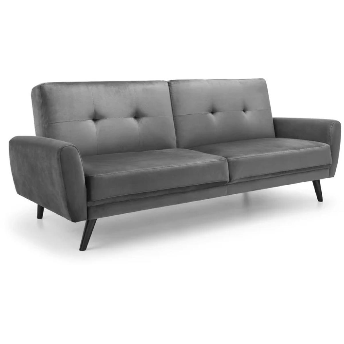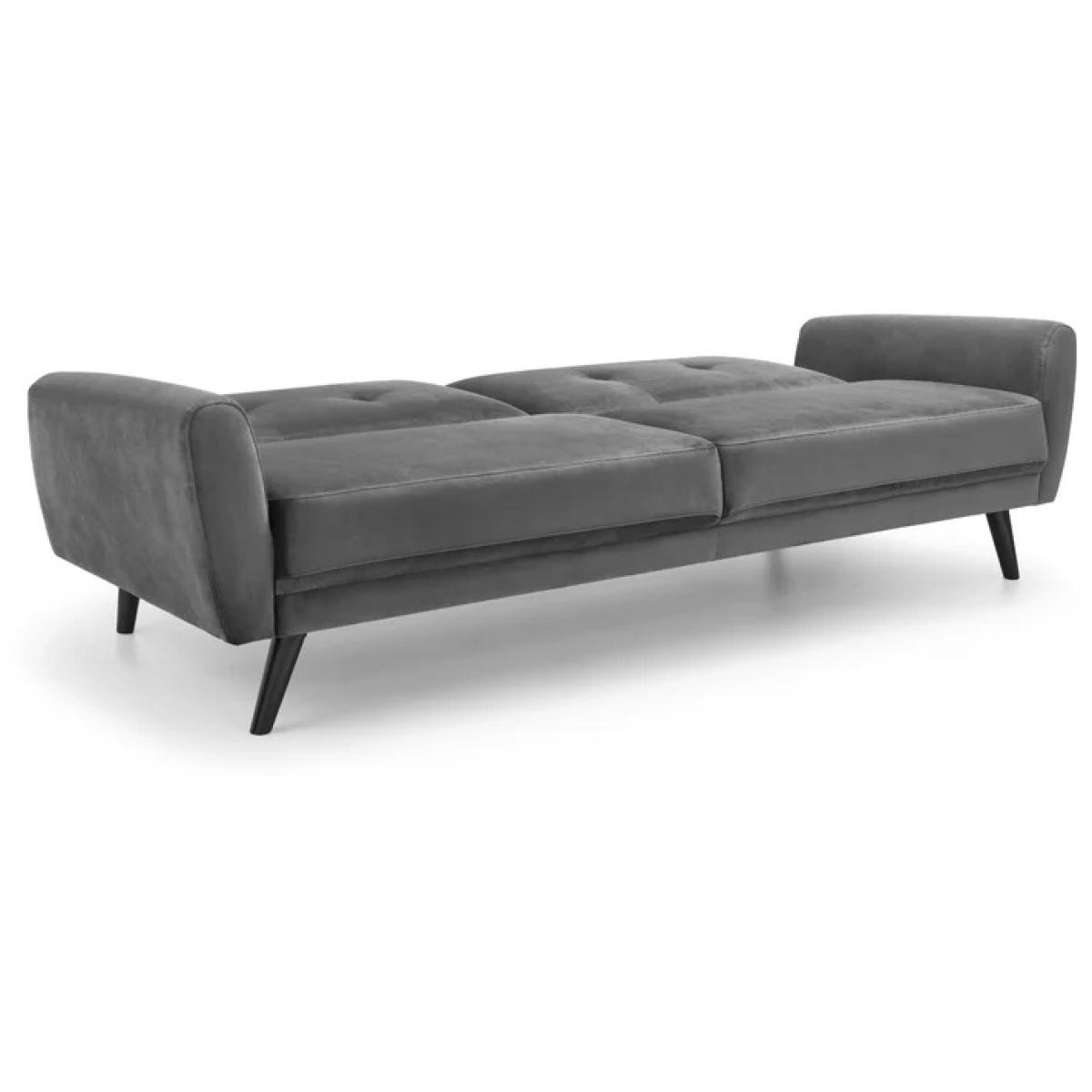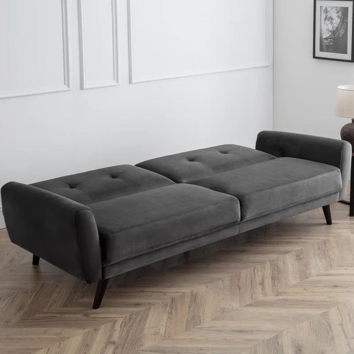 The Julian Bowen Monza Sofa Bed - Dark Grey Velvet is a stylish , highly functional piece with retro Scandinavian design influences. It is impeccably tailored in a smart, dark grey velvet fabric. Monza has a seat that is deeper than most similarly sized sofas, and is consequently incredibly comfortable. The Sofabed's split back folds down easily to form a large, comfortable sleeping surface for two adults. Its clean lines and slick design make it a real focal point for any modern living space. Part of the wider Monza upholstery range from Julian Bowen. Features: Sumptuous Dark Grey Velvet Fabric. Extremely Comfortable with Perfect Seat Depth. Retro Scandinavian Styling. Independently Acting Backs allow one side to Recline while the other remains Upright. Assembly Required Dimensions: Height 87cm Width 221cm Depth 87cm All screens vary in colour reproduction and whilst every effort has been made to display the colour as accurately as possible it is for guidance only.
