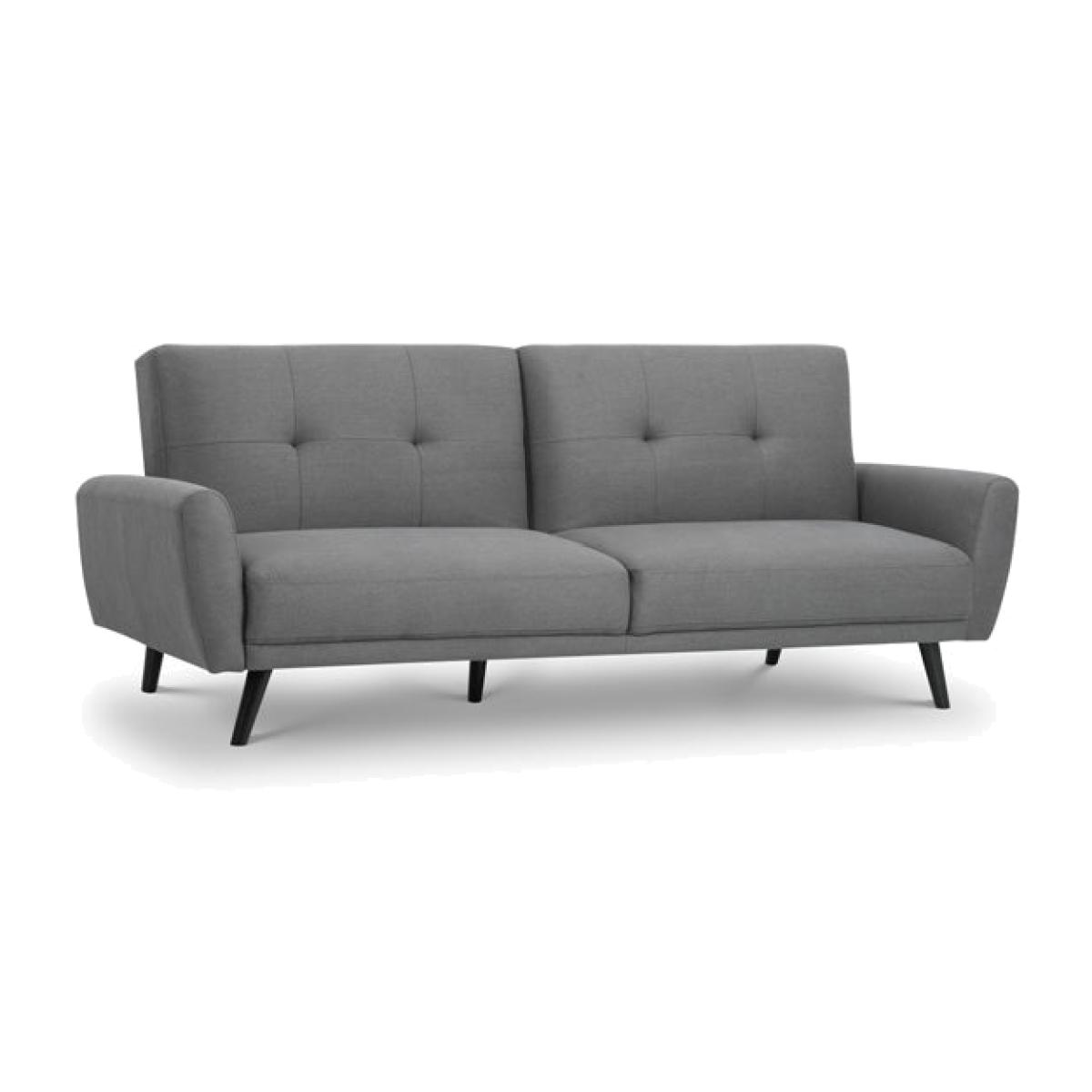 The Monza Sofabed is a stylish , highly functional piece with retro Scandinavian design influences. It is impeccably tailored in a smart, grey linen fabric. Monza has a seat that is deeper than most similarly sized sofas, and is consequently incredibly comfortable. The Sofabed's split back folds down easily to form a large, comfortable sleeping surface for two adults. Its clean lines and slick design make it a real focal point for any modern living space. Part of the wider Monza upholstery range from Julian Bowen. H: 87 (18cm mattress height) x W: 221 (110cm as a sofa bed) x D: 87 (190cm as a sofa bed) cm.
