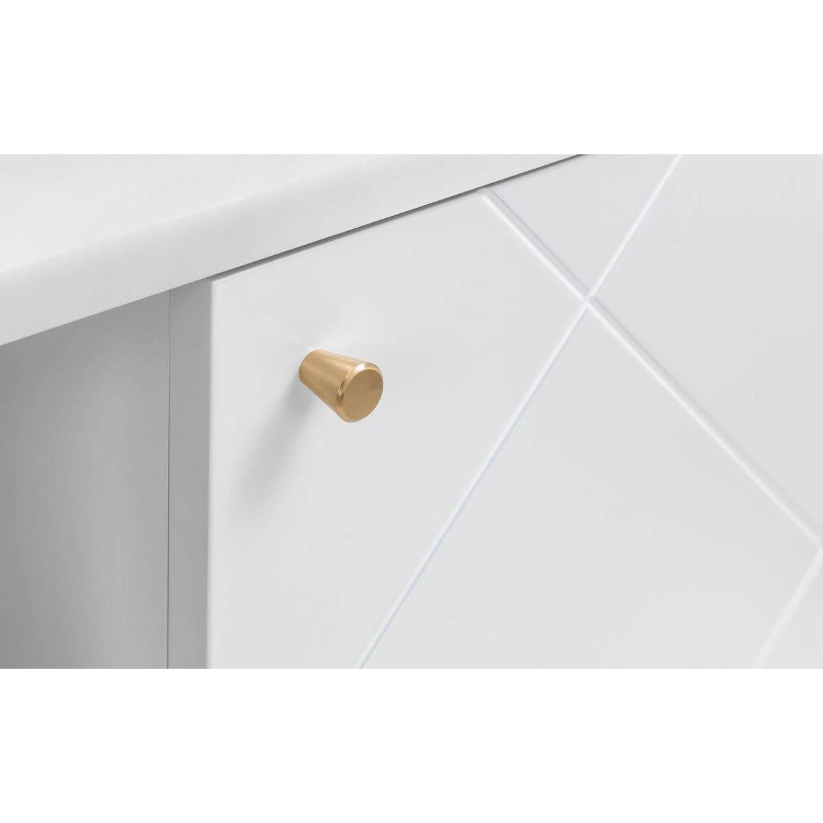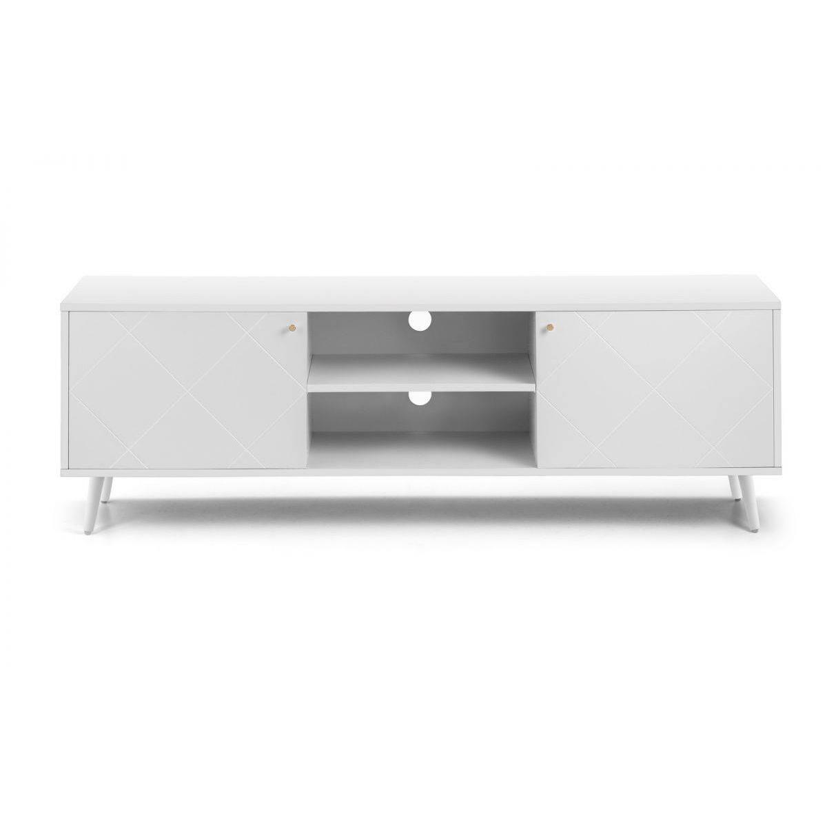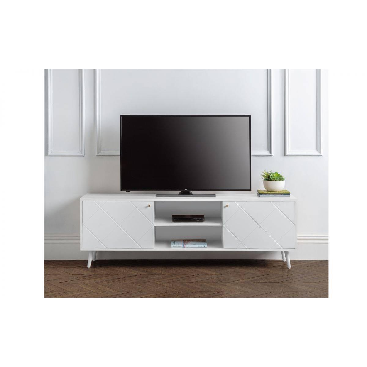 A subtle, yet striking linear pattern creates the eye-catching slickness of the Moritz TV Cabinet. Featuring two shelves with two holes for cables to sit neatly through the back of the cabinet, and two white cupboard doors, with simplistic, yet stunning gold handles. The Moritz TV Cabinet is available with white doors and a choice of white or oak effect sides and feet, offering great functionality that looks good with any modern decor. Assembly required.