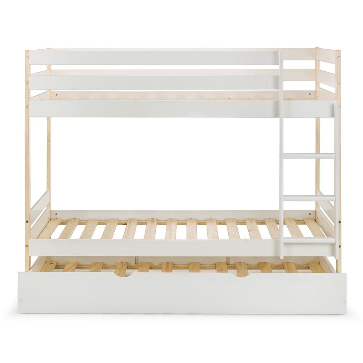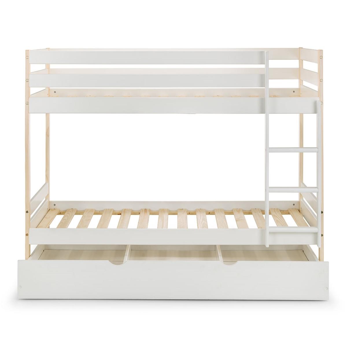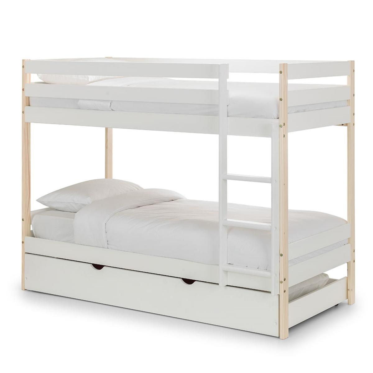 With its simple and classic design, the Nova Bunk Bed from Julian Bowen will make a wonderful addition to your kiddies room. Finished in white and natural pine you'll have no issues getting this to match your current interior style. A perfect option for smaller bedrooms or siblings, give them more floor space to play. The only thing now is to decide who gets the top bunk?! What's more, with the option to add a trundle drawer, create extra storage space or even an extra bed for those sleepovers!.