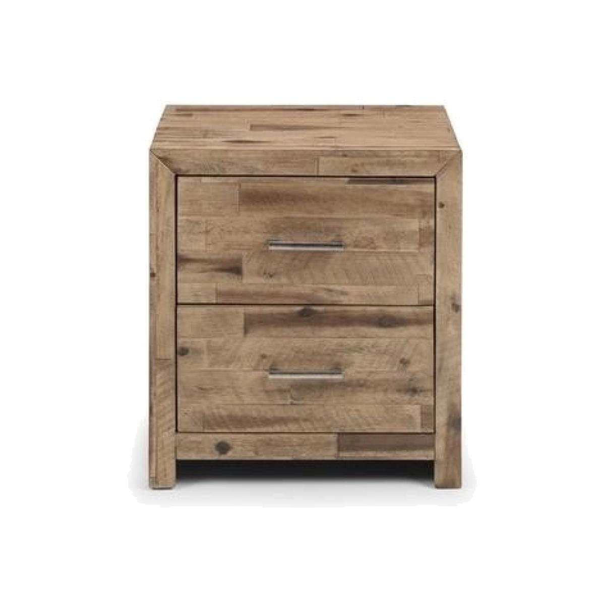 Dimensions H58 x W53 x D40 cm Features. The bedside's distinctive lines show the natural beauty of the wood. Brings an industrial chic feel to any bedroom. Crafted from solid acacia Pair with the Julian Bowen Hoxton Bed Easy assembly..