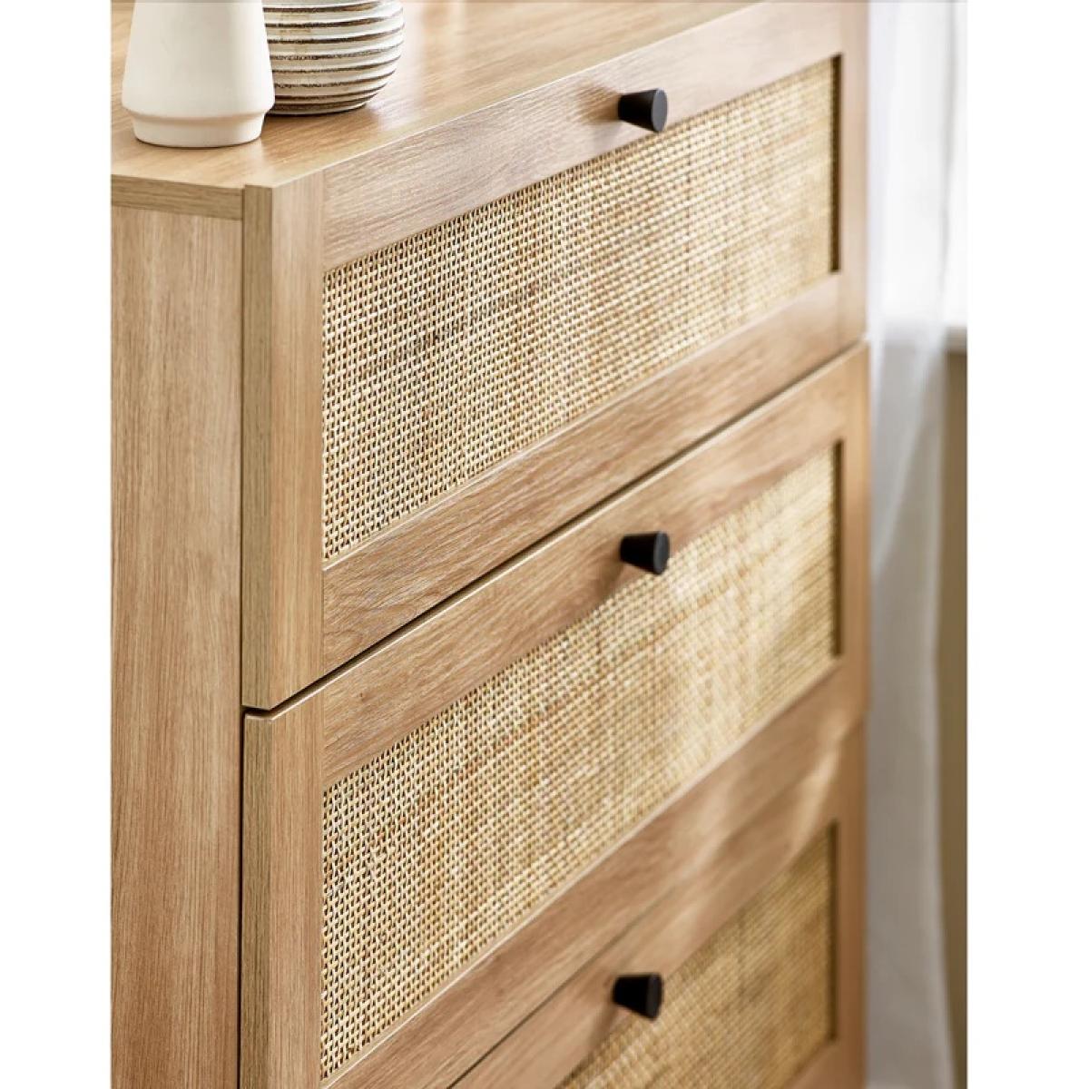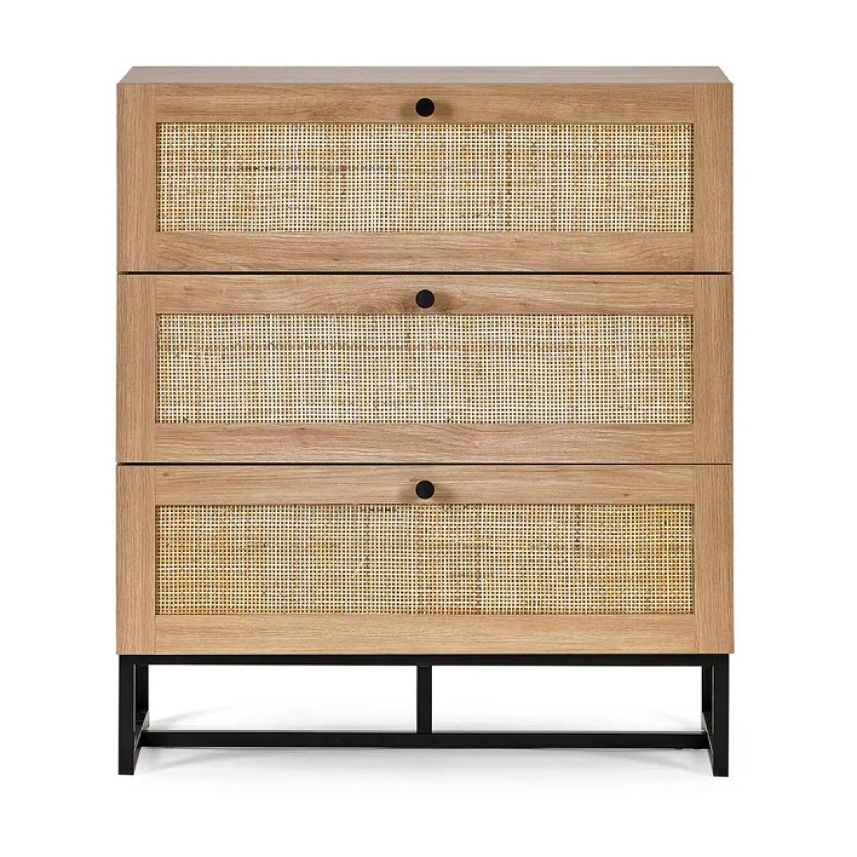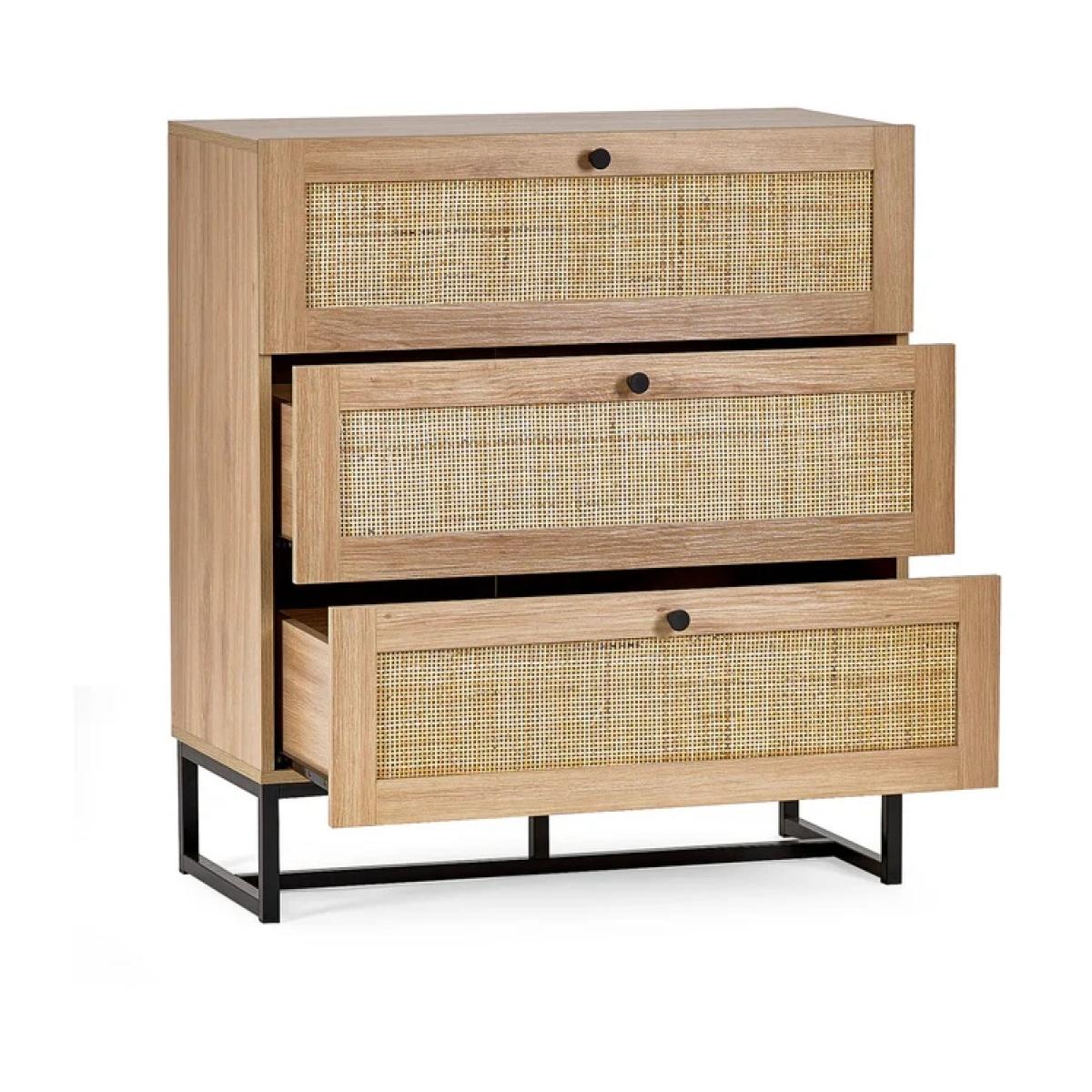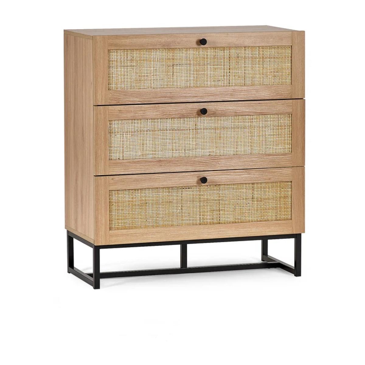 Bring natural warmth and modern style to your bedroom with the Julian Bowen Padstow 3 Drawer Chest in Oak. With its clean lines and minimalist handle-less design, this chest offers a fresh take on classic wooden furniture, making it a perfect fit for both modern and Scandinavian-inspired interiors. Crafted in a warm oak-effect finish, the Padstow chest features three generously sized drawers—ideal for storing clothes, accessories, or household essentials. The smooth drawer fronts and understated profile create a calm, uncluttered look while offering practical storage to help keep your space tidy and serene. Whether styled on its own or paired with other pieces from the Padstow range, this chest brings effortless elegance and everyday convenience to your home. Features: Warm oak-effect finish for a natural, timeless look Three spacious drawers for versatile storage Clean, handle-less drawer design for a modern edge Sturdy and durable construction Part of the Julian Bowen Padstow bedroom furniture collection Home Assembly Required Dimensions Height 90cm Width 80cm Depth 40cm All screens vary in colour reproduction and whilst every effort has been made to display the colour as accurately as possible it is for guidance only.