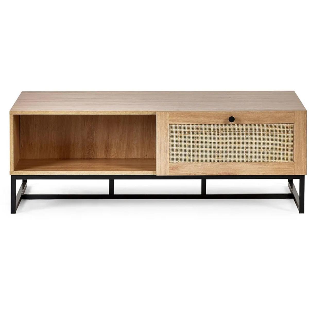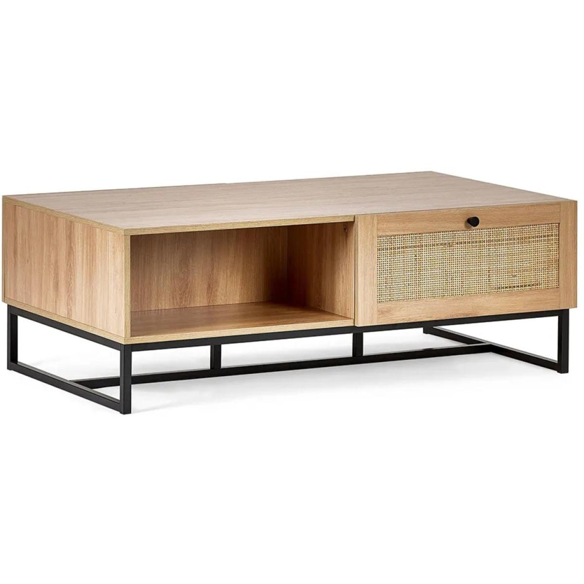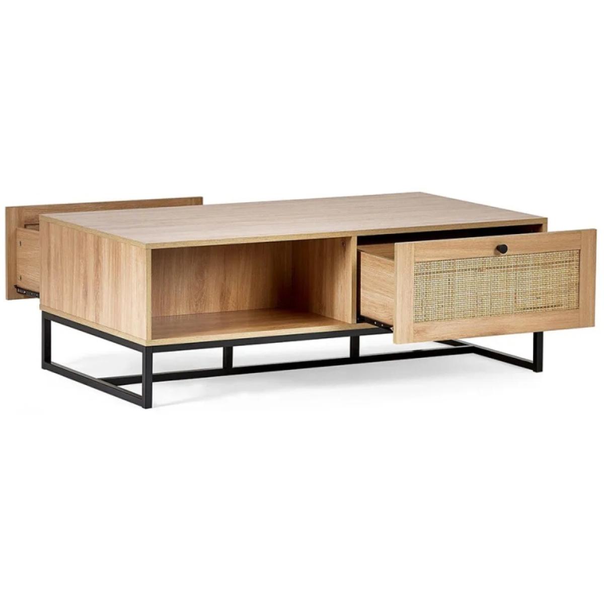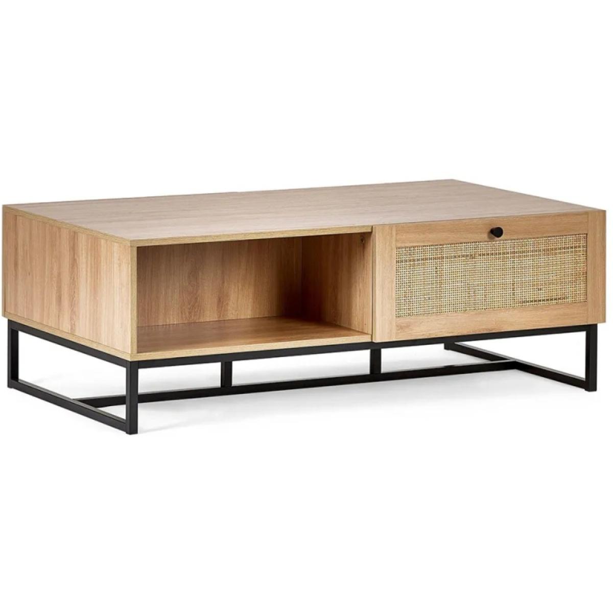 Infuse your living space with warm retro character and modern design with the Julian Bowen Padstow Coffee Table – Oak. This stylish coffee table combines the nostalgic charm of natural rattan drawer fronts with a contemporary industrial-style black metal base. The oak-effect finish adds a touch of warmth and texture, making it a standout yet versatile piece for any interior. With two spacious drawers and a sturdy surface, the Padstow Coffee Table is as practical as it is stylish—ideal for keeping your living area clutter-free while serving as a striking centrepiece. Whether your décor leans towards mid-century, boho, or urban chic, this table brings effortless personality and function to your home. Key Features Retro-inspired design with a modern twist Warm oak-effect finish with natural rattan drawer fronts Industrial-style black metal base Two drawers for convenient storage Ideal for eclectic, modern, or boho interiors Easy to assemble with full instructions included Dimensions Height: 42cm Width: 120cm Depth: 70cm All screens vary in colour reproduction and whilst every effort has been made to display the colour as accurately as possible it is for guidance only.