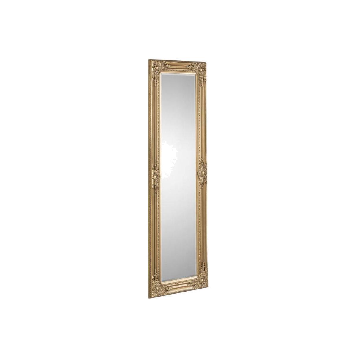 The Palais Gold dress mirror combines beautiful decorative detailing with a timeless antique finish to provide a stylish focal point for any room. Elegant detailing. Easily attaches to the wall for safety. Constructed from wood, gypsum frame, glass mirror and an MDF backboard. Dimensions: 4cm (D) x 40cm (W) x 130cm (H)