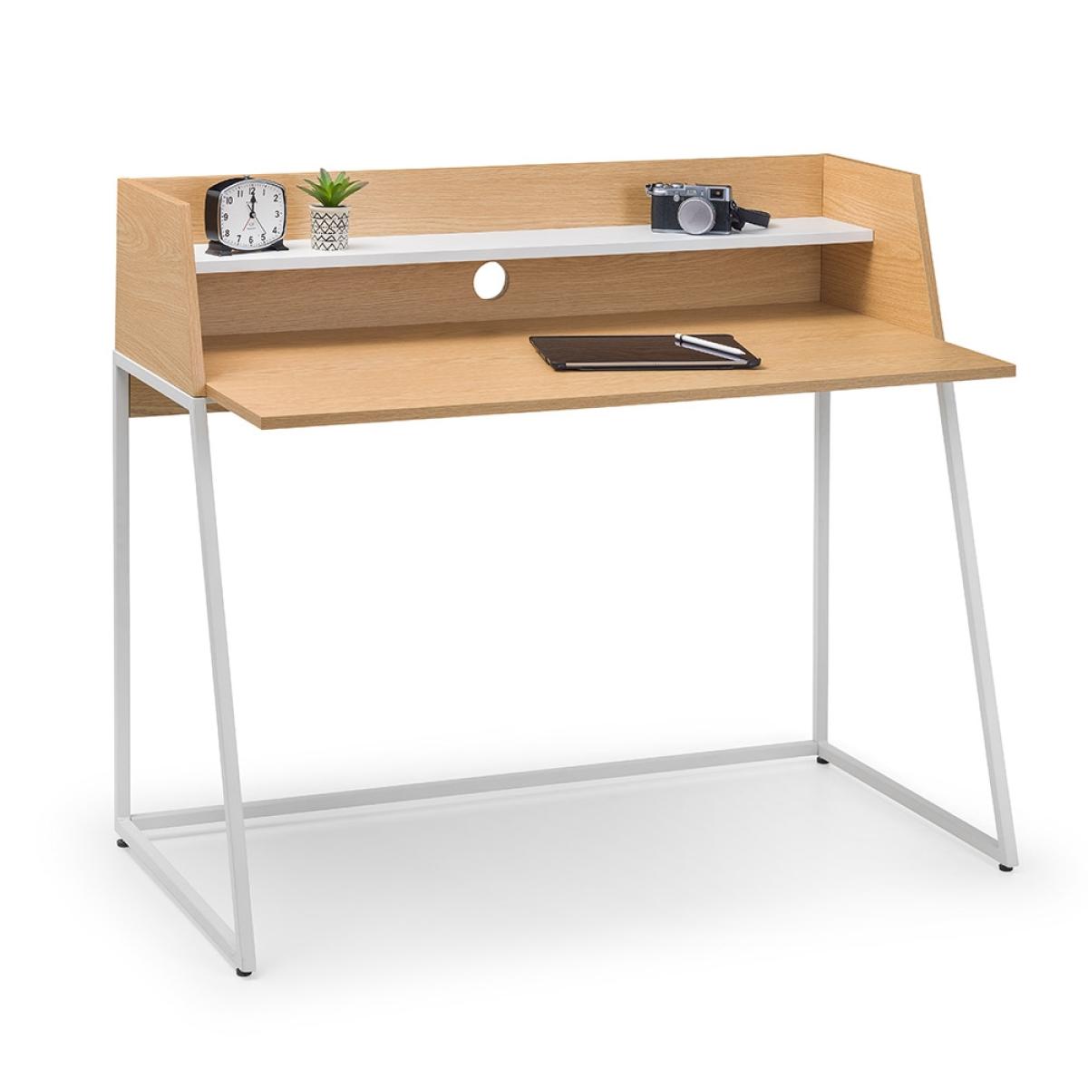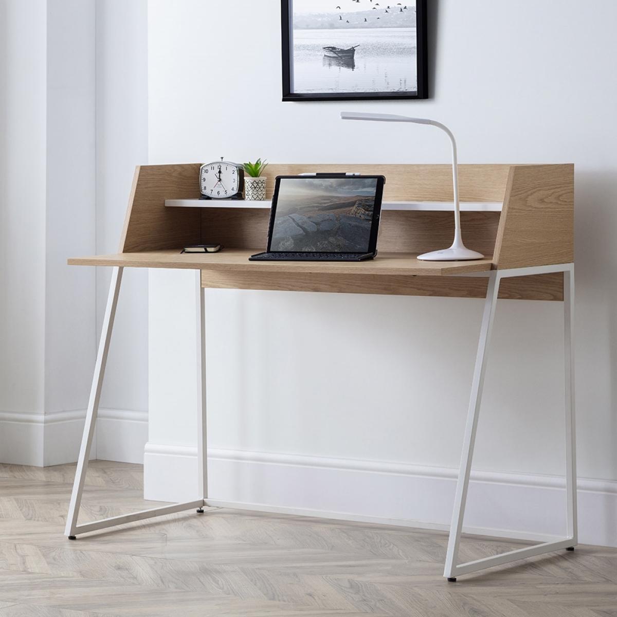 I love the Julian Bowen Palmer desk for its clean, minimal design that works well in modern or Scandinavian-inspired interiors. Its simple structure, with a light wood finish and white metal legs, makes it versatile and adaptable to various spaces such as home offices, work nooks, or even bedrooms. Practical styling tips include adding a few decorative desk accessories, like a stylish organiser or a small potted plant, to keep the workspace tidy and inviting. It pairs well with light-coloured walls and neutral accessories, but can also be made to stand out with darker or more vibrant surroundings for a contemporary edge. Its understated elegance makes it a practical yet stylish addition to any home working environment.