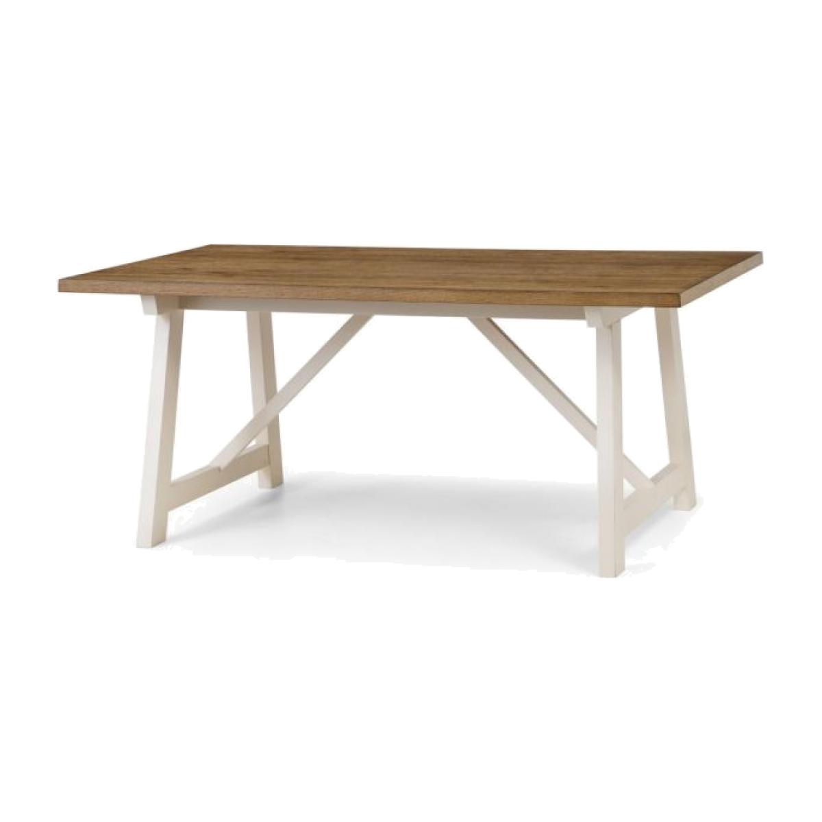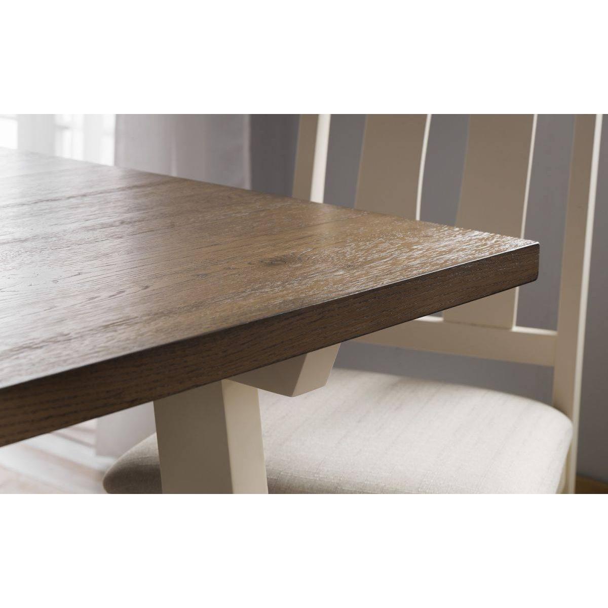 The Pembroke Dining Table is crafted from beautiful materials to form an imposing and timeless dining set, equally at home in a country or contemporary setting. A fine real oak veneer in a warm Welsh oak finish adds a real warmth and depth to the substantial table top and contrasts perfectly with the delicate ivory coloured lacquer of the dining table's base. Strong oak veneered MDF and rubberwood frame. Dimensions: 180cm (D) x 100cm (W) x 75cm (H) Assembly required. Please note, this product is an online exclusive and is not available to view in any of our stores.