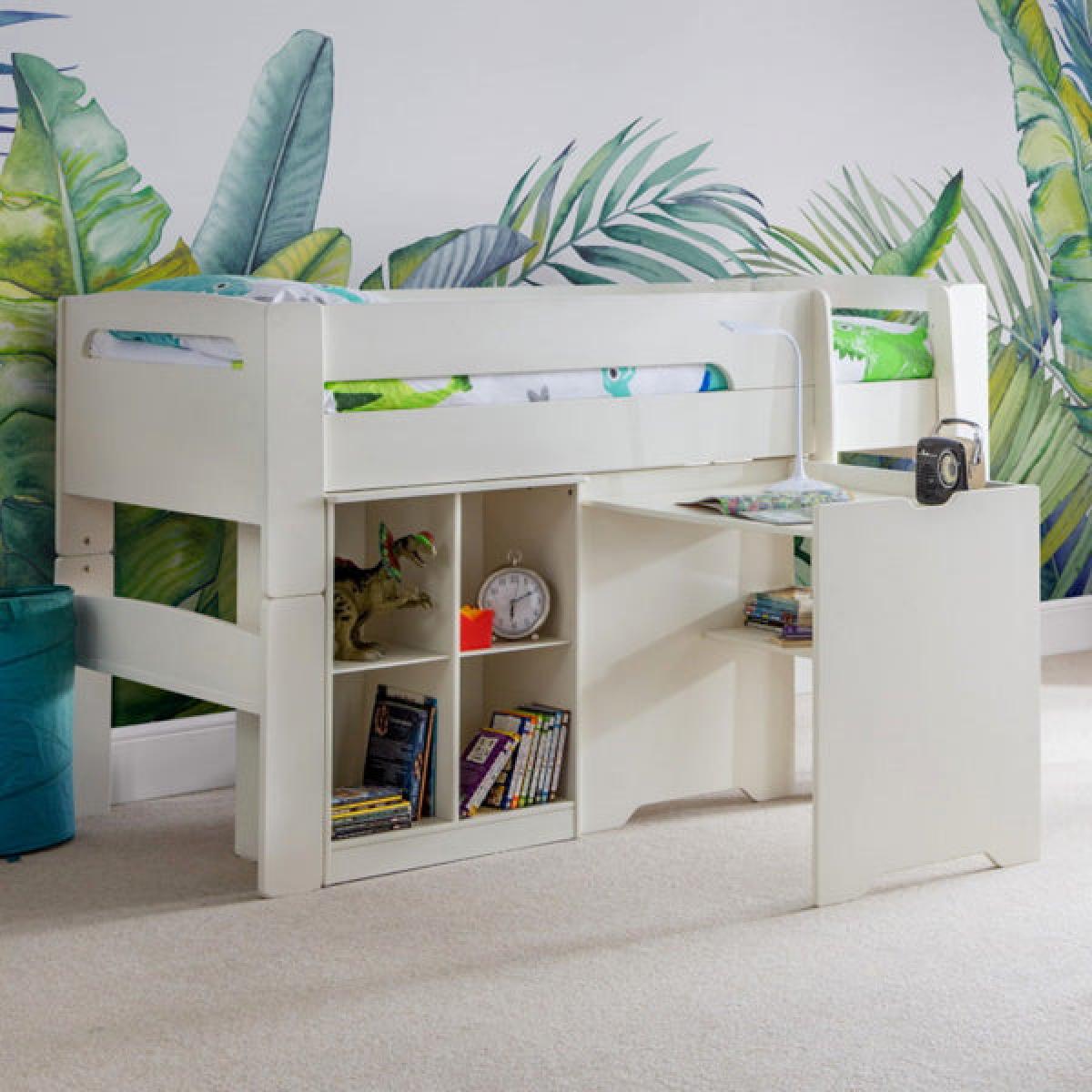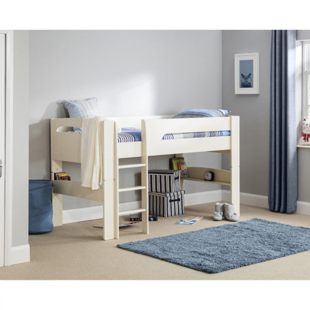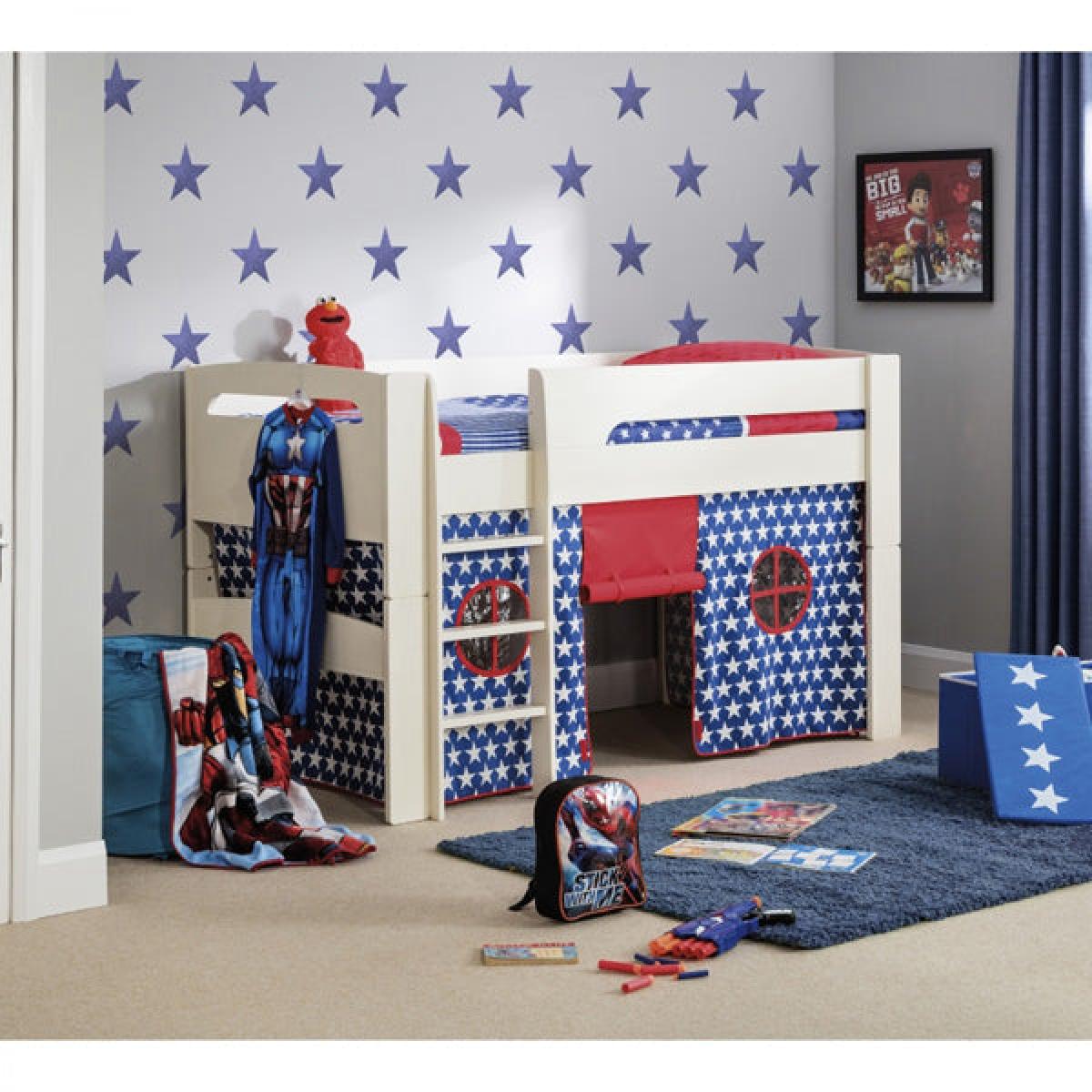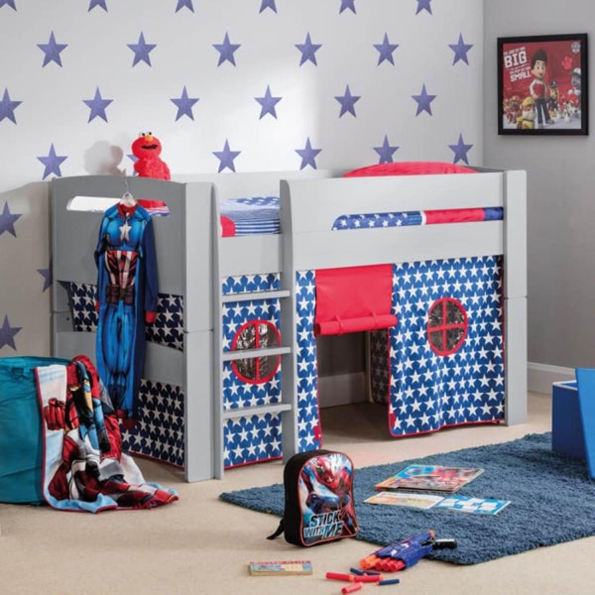 The Pluto Midsleeper is a sturdy and stylish mid-sleeper finished in a smooth dove grey lacquer. Pluto's contemporary design is accompanied by great functionality, with a robust ladder that can be assembled on either left or right and the capacity to convert to a single bed if required at any time in the future. It can be used on its own or paired with the extensive Julian Bowen Cameo Bedroom collection, while pairing it with the Pluto Star Tent (sold separately) in either pink or blue will turn the Pluto mid-sleeper into a fun and vibrant play space for kids to enjoy.