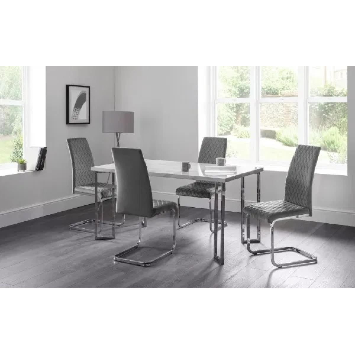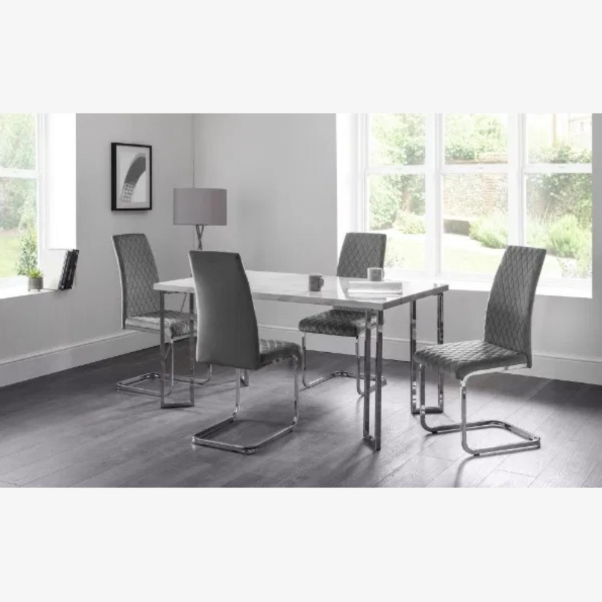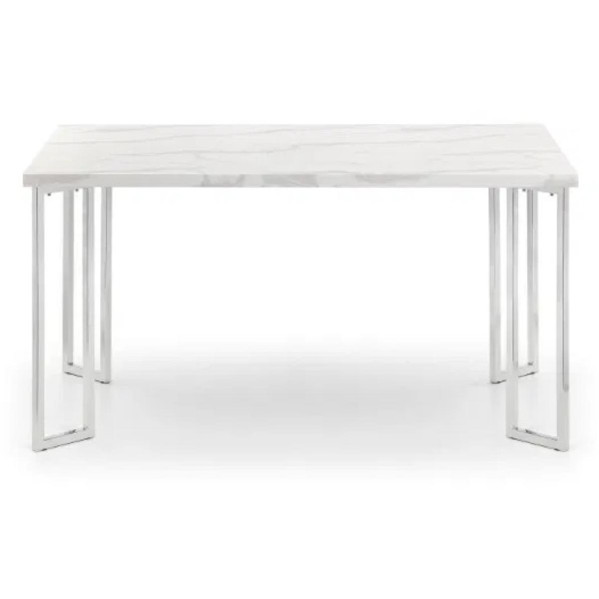 Sophisticated and striking, the Positano Dining Table by Julian Bowen makes a bold statement in any contemporary dining space. Featuring a luxurious marble-effect top and a sleek chrome legs, this table combines modern design with a sense of timeless elegance. Features: Stylish marble-effect dining table with chrome legs. Seats 4–6 people comfortably – perfect for family dining and entertaining Contemporary design with a luxury feel Sturdy and durable construction for everyday use Designed by Julian Bowen, trusted for quality and craftsmanship Dimensions: Height: 76cm Width: 150cm Depth: 90cm A glamorous centrepiece, the Positano Dining Table brings together style, durability, and sophistication – perfect for elevating any dining room. Please note All screens vary in colour reproduction and whilst every effort has been made to display the colour as accurately as possible it is for guidance only.