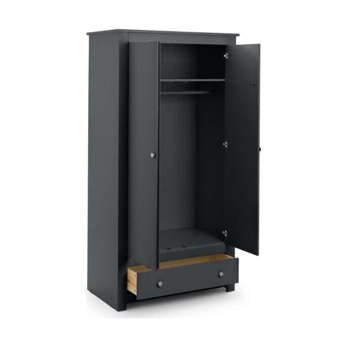 I love this wardrobe because of its sleek anthracite finish, which adds a modern touch to a variety of interiors. It works particularly well in contemporary or minimalist spaces, but can also complement industrial or Scandinavian styles when paired with other muted tones and simple accessories. Practical styling tips include organising the interior with multi-functional storage solutions like baskets or hanging organisers to maximise space. You could also add a small mirror or decorative touches on top to personalise it without compromising its streamlined look. Overall, it’s a versatile piece that balances style and practicality, making it a reliable choice for any bedroom update.