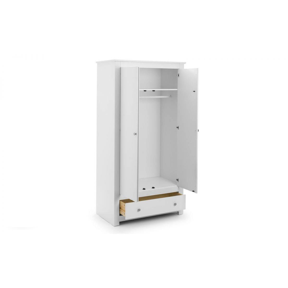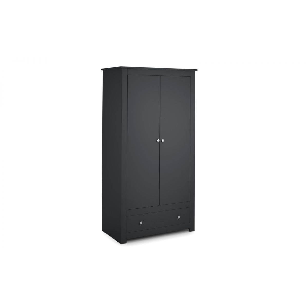 Boasting clean, simple lines the Radley wardrobe is perfectly suited for both modern or traditional styles. Featuring a hanging rail behind 2 doors, and an addiitonal storage drawer to store your clothes away neatly. Finished in an anthracite lacquer, with delicate silver handles, the Radley Bedroom Collection is perfect for adult and kids bedrooms. Features: Dimensions: 55cm D x 97cm W x 190cm Finished in an anthracite or surf white lacquer Suitable for both modern and traditional décor Featuring a hanging space behind 2 door with an additional storage drawer Part of the Julian Bowen Radley Bedroom Collection Please note, this product is an online exclusive and is not available to view in any of our stores.