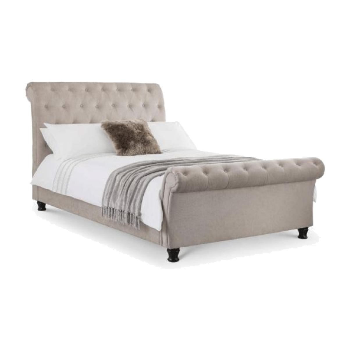 This classically designed bed frame from the Julian Bowen Ravello range has been upholstered in a soft-touch chenille fabric and features a sprung slatted base for added comfort. Assembly required Mattress is not included Dimensions: Double: 241cm (W) x 145cm (D) x 119cm (H) King. Size: 250cm (W) x 161cm (D) x 119cm (H) 1 Year Manufacturer's Guarantee Please note, this product is an online exclusive and is not available to view in any of our stores.