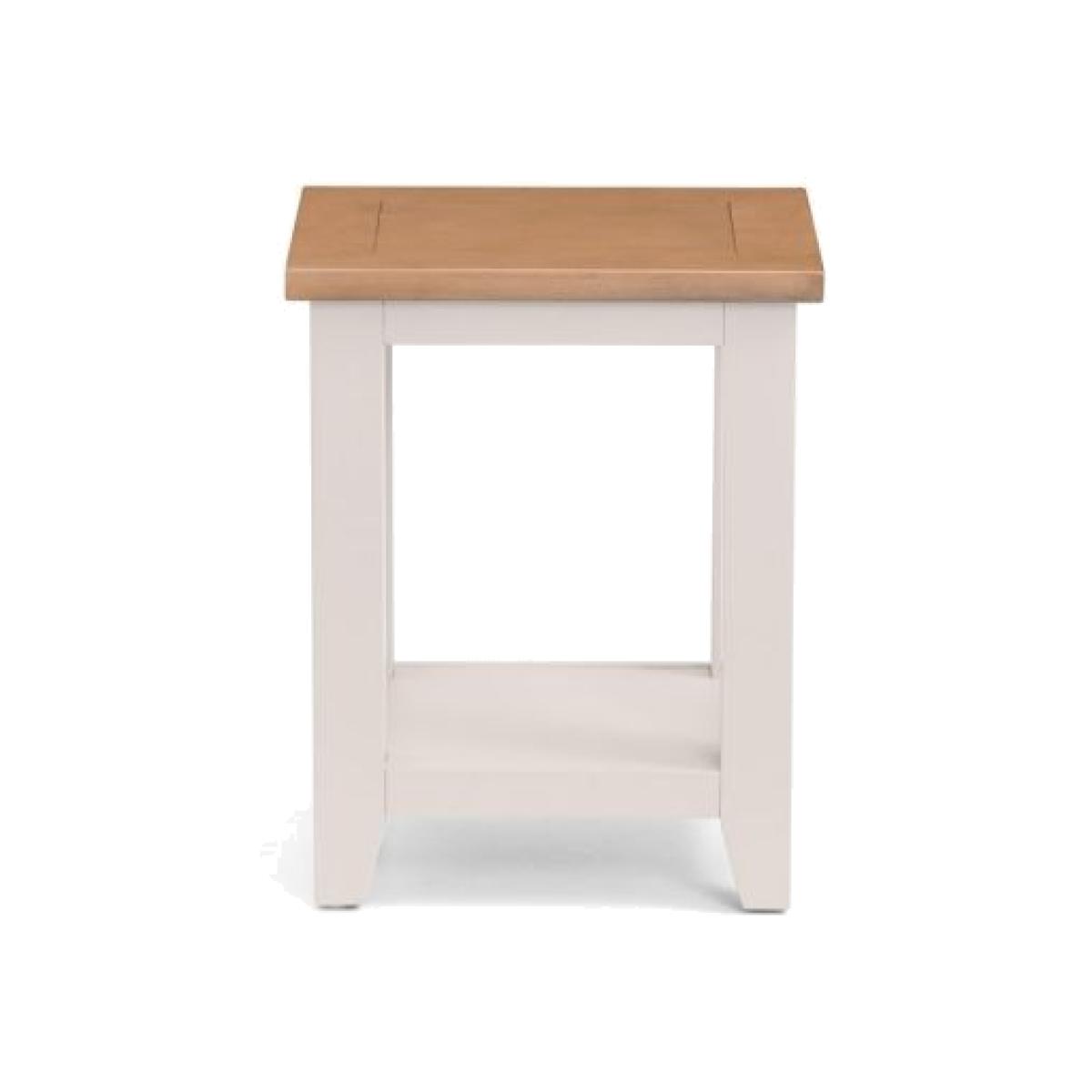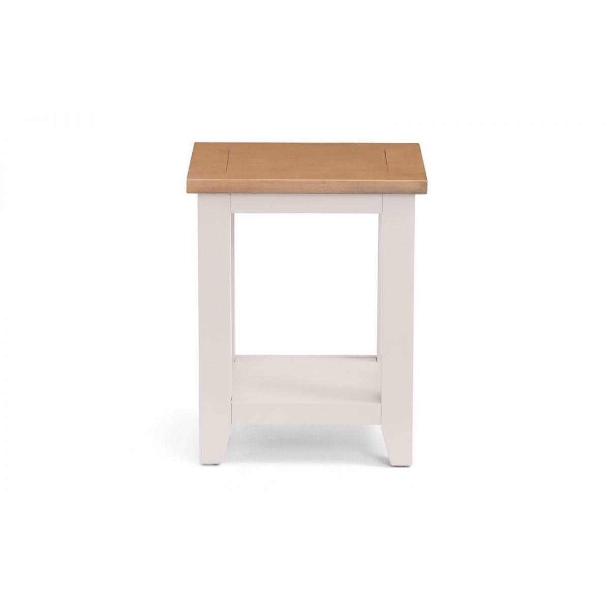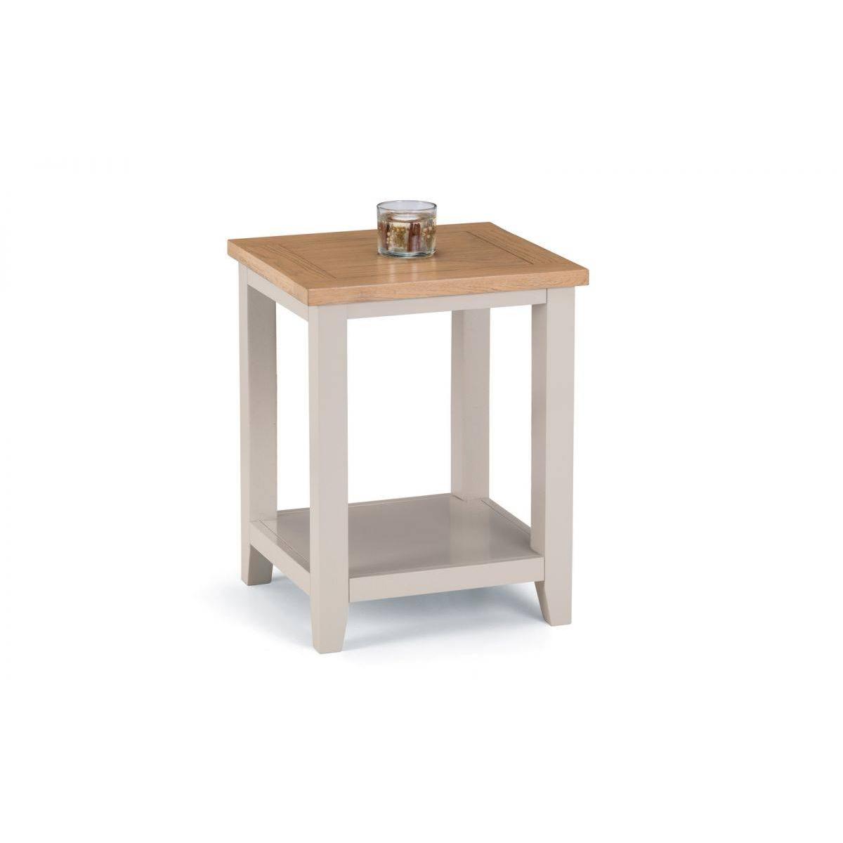 An elegant lamp table, presented in an immaculate painted, soft Elephant Grey finish with beautiful pale oak tops, crafted from a combination of high grade American White Oak solids and veneers. The combination of superior quality materials and classic design ensures a timeless appeal and fits perfectly alongside both traditional and contemporary decor. Part of the extensive Richmond Dining and Occasional furniture range from Julian Bowen. Handy lower shelf. Fully assembled construction. Dimensions: 38cm (D) x 44cm (W) x 55cm (H)Please note, this product is an online exclusive and is not available to view in any of our stores.