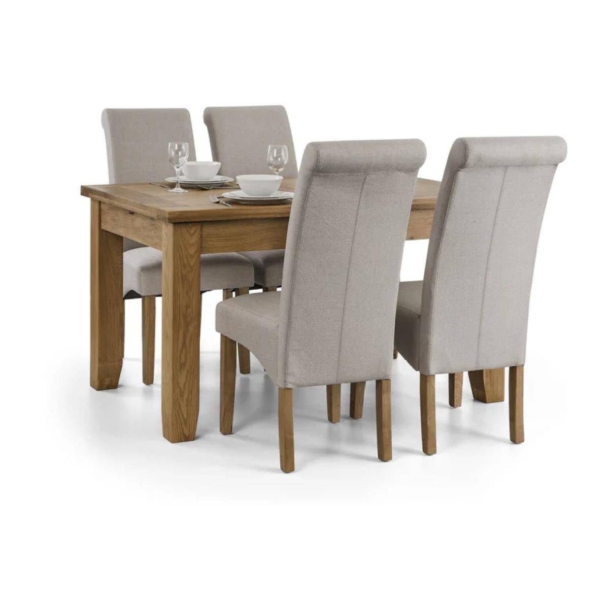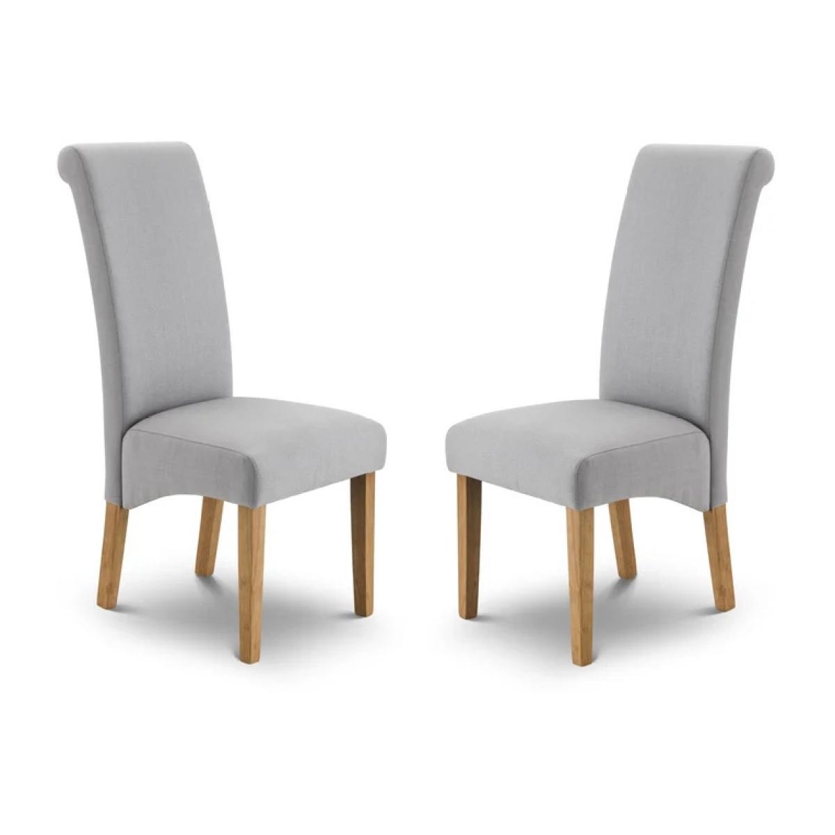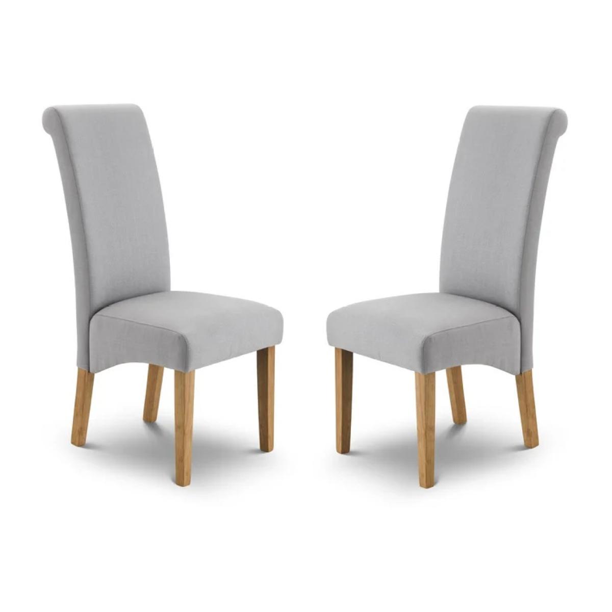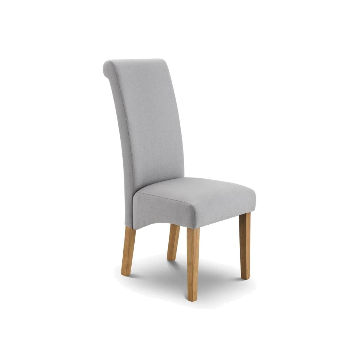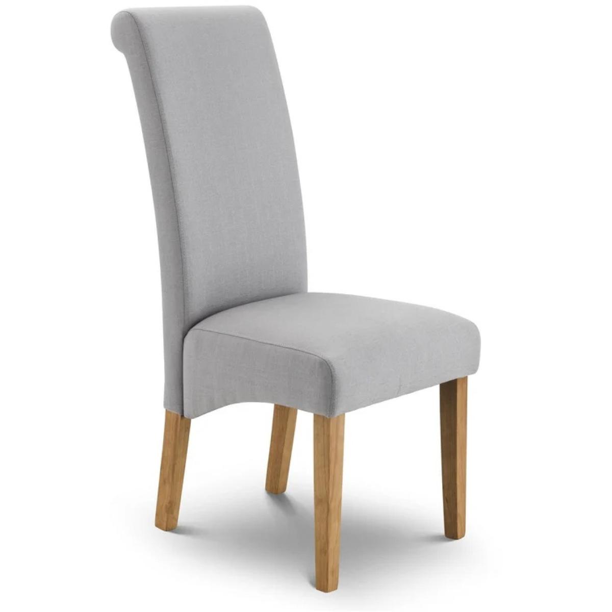The Julian Bowen Rio Scrollback Fabric Chair blends classic elegance with modern comfort. Upholstered in soft, durable fabric, it features a graceful scrollback design and cushioned seat that provide both style and support. The sturdy wooden legs complete the look, making it a versatile choice for dining rooms, living spaces, or accent seating. A timeless piece that enhances any interior with understated sophistication. Features: Elegant scrollback dining or accent chair Upholstered in soft, durable fabric Cushioned seat for lasting comfort Solid wooden legs for stability and style Perfect for both traditional and modern interiors Home Assembly Required Dimensions: Height 105cm Width 47.5cm Depth 68cm All screens vary in colour reproduction and whilst every effort has been made to display the colour as accurately as possible it is for guidance only