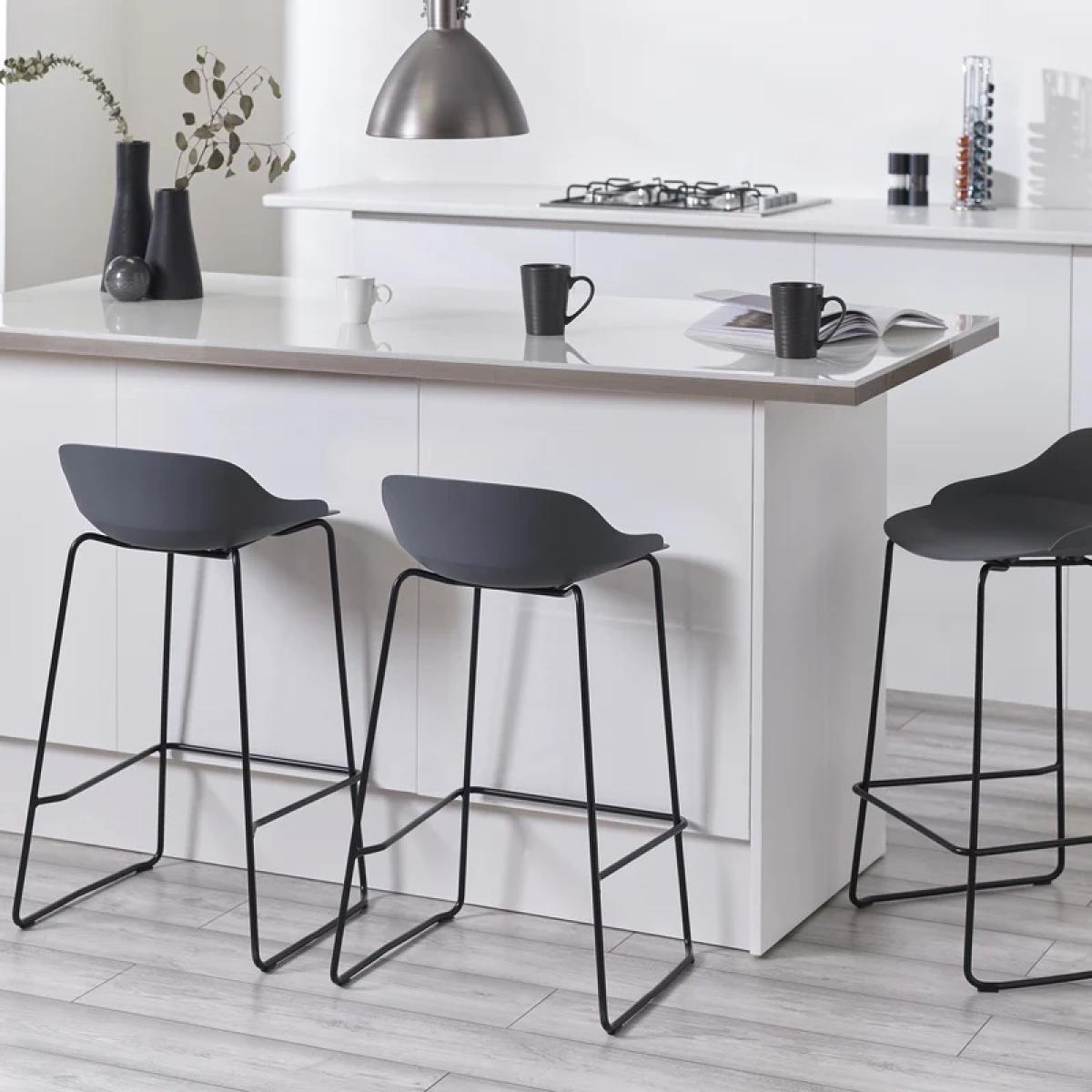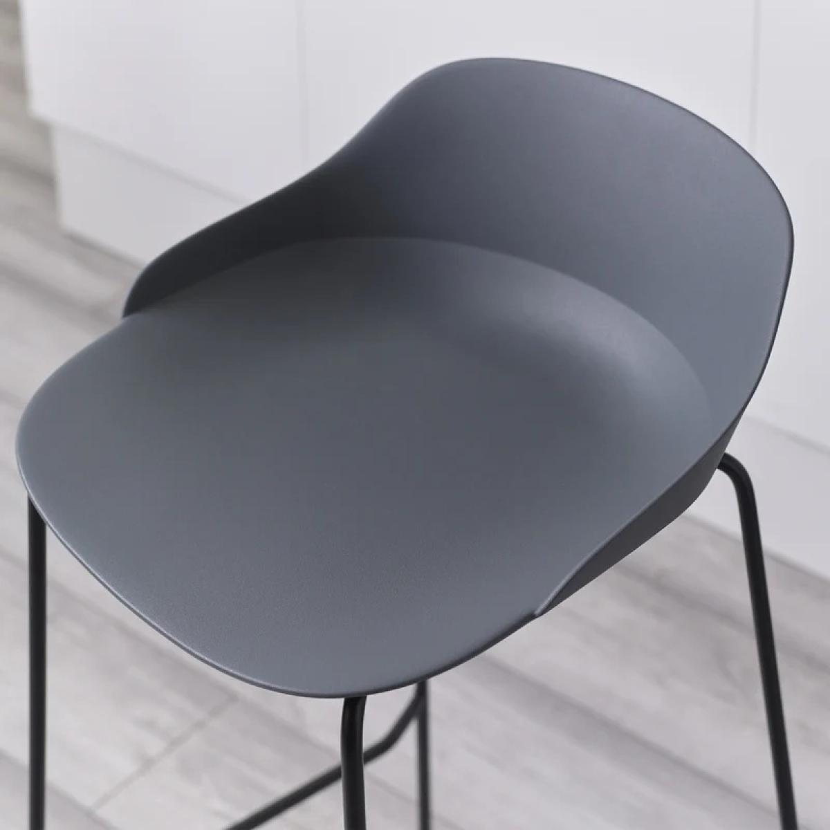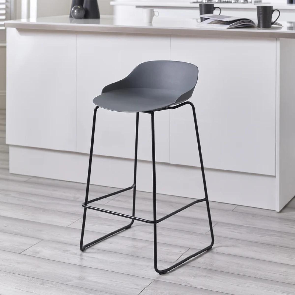 Upgrade your seating experience with the Julian Bowen Rocco Stool - Dark Grey a sleek and contemporary design that effortlessly combines style and functionality. The flowing metal legs and an elegant dark grey curved seat with a low back create a chic and contemporary look, perfect for modern kitchens, home bars, and dining rooms. Available in three stylish colors, the Rocco Stool is a versatile and chic addition to any space. Features: Features flowing metal legs and a sleek dark grey curved seat for a chic and contemporary look. Experience optimal comfort with the low back design, providing support. Choose from three stylish colors to effortlessly integrate into your decor, ensuring a versatile and chic addition to any space Ideal for extended seating in modern kitchens, home bars, and dining rooms. Home Assembly Required Dimensions: Height 83cm Width 48cm Depth 49cm All screens vary in colour reproduction and whilst every effort has been made to display the colour as accurately as possible it is for guidance only