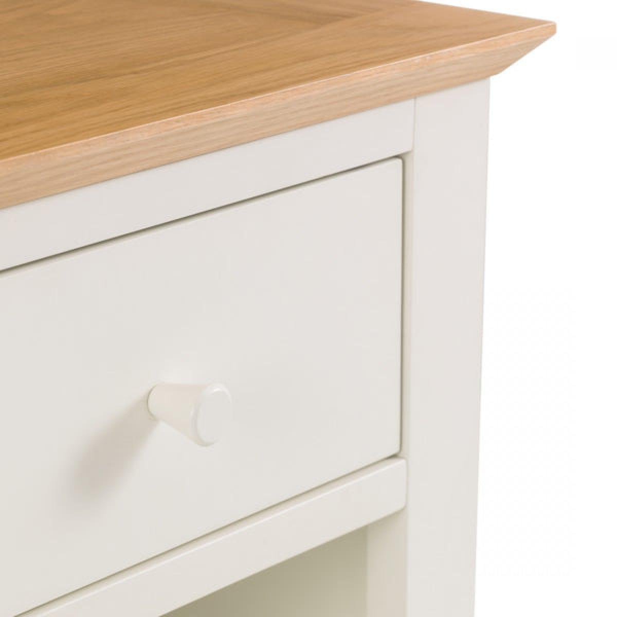 I love the Julian Bowen Salerno as a versatile bedside table that brings a mix of classic shaker style with modern practicality. Its clean, straightforward design works beautifully in both traditional and contemporary interiors, especially those with a neutral palette or earthy tones. The contrasting wood top adds warmth and texture, making it ideal for layering with decorative lamps, books, or small accents. Practical styling tips include keeping the surface free for an uncluttered look, or adding a small tray for organising essentials. Also, it pairs well with other light wood or painted furniture to create a light, airy feel. Its compact size makes it perfect for smaller bedrooms or creating a unified look across multiple bedsides.