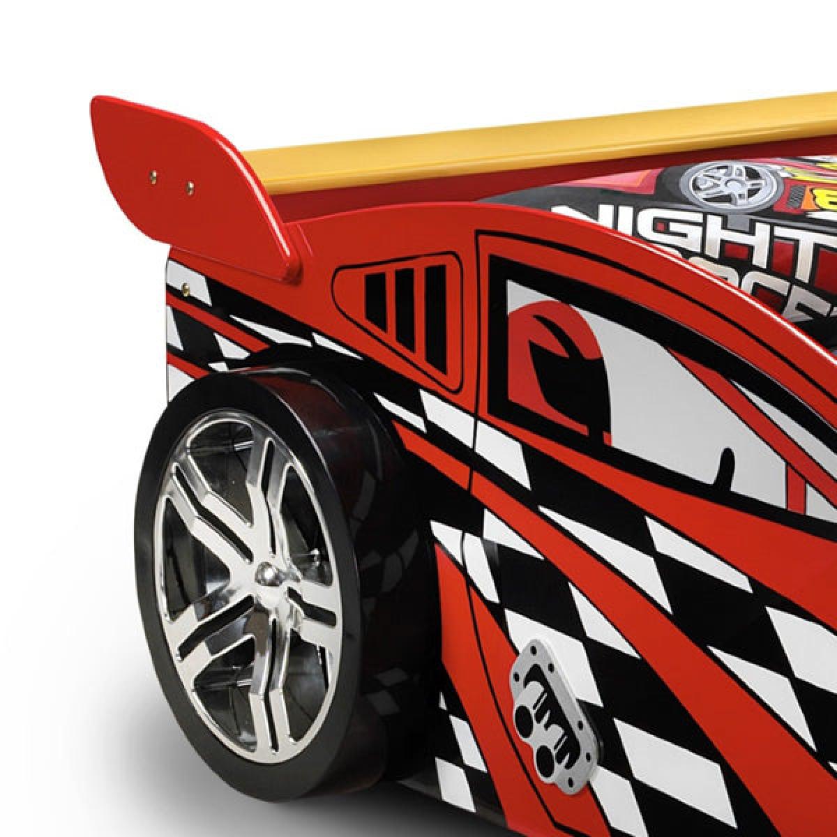 The Scorpion Racer Bed finished in a stunning high gloss red laquer will lighten up the mood in any kids bedroom! This racing car design will make your kids love getting into bed at night. With the added option of the matching Julian Bowen Scorpion Bedding Set, create your kids dream room today! Please note the bedding fits a standard UK single duvet and is sold separately.