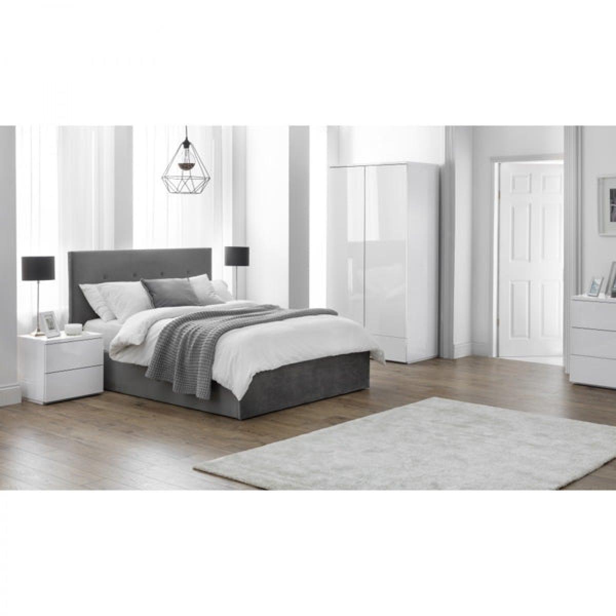 Shoreditch is a stunning bed with modern, clean lines, beautifully upholstered in an exquisite short-pile slate grey velvet fabric. Shoreditch has an imposing, high headboard, with immaculate button detailing which adds a real wow factor to any bedroom, while its timeless styling makes it the ideal accompaniment to a wide range of decorative styles. A sprung slatted base ensures supreme comfort and prolonged mattress life. H:110 x W: 167 x D: 212 x Head H: 110 x Foot H: 32 cm.