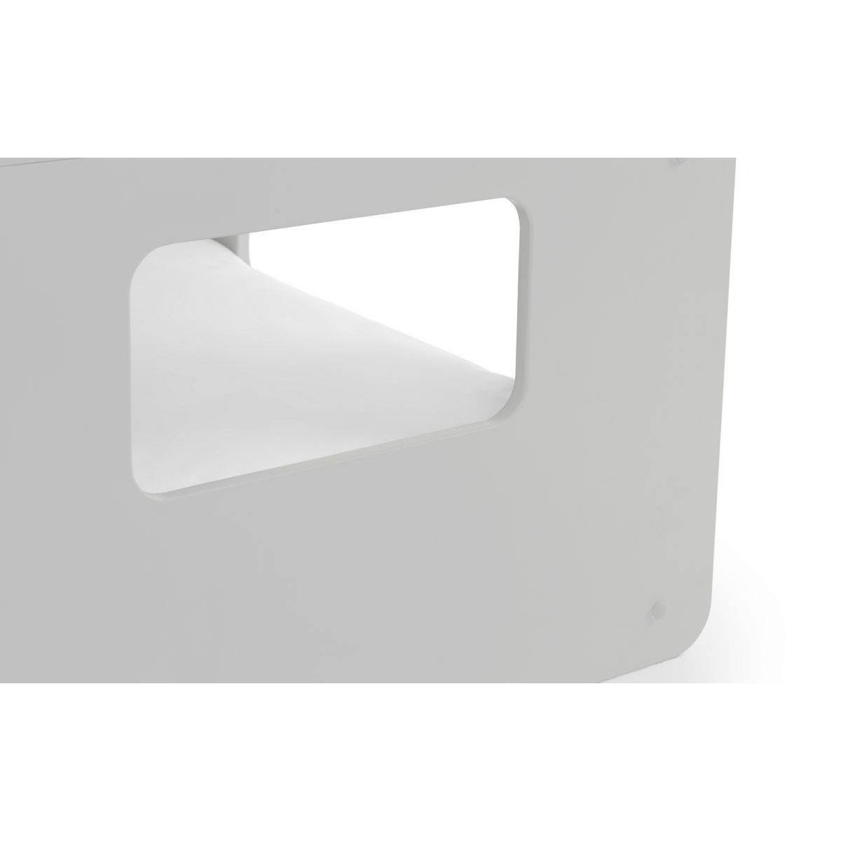 Add a contemporary, trendy look to your child's bedroom with the Solar Bunk Bed. Modern and sleek in design, this pod style bunk appeals to all children with the choice of a lacquered white or dove grey finish. Sleeping two children, the lower bunk is close to the ground making is suitable for a younger child to ensure a good night sleep. Requires 2 x standard UK Single Mattresses (90cm x 190cm).  Due to Bunk Bed Safety Regulations the maximum mattress depth suitable for use on the upper bunk is 18cm. Dimensions: 97cm (D) x 121cm (W) x 208cm (H) Requires assembly. Please note, this product is an online exclusive and is not available to view in any of our stores.