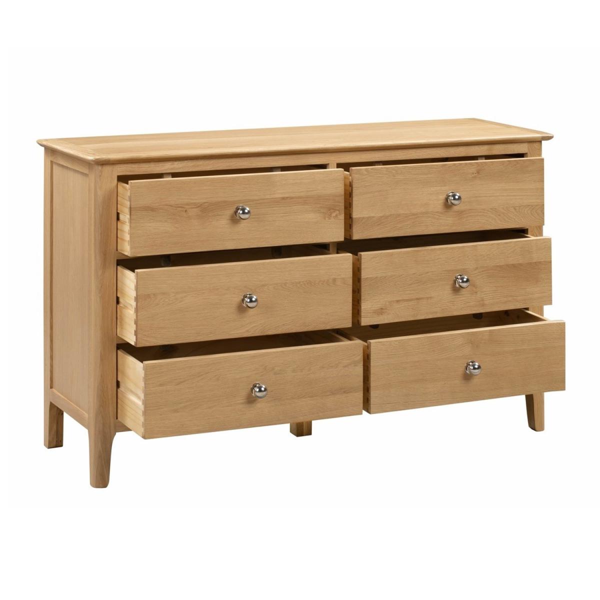 Julian Bowen Solid Oak 6 Drawer Wide Chest of Drawers - Cotswold