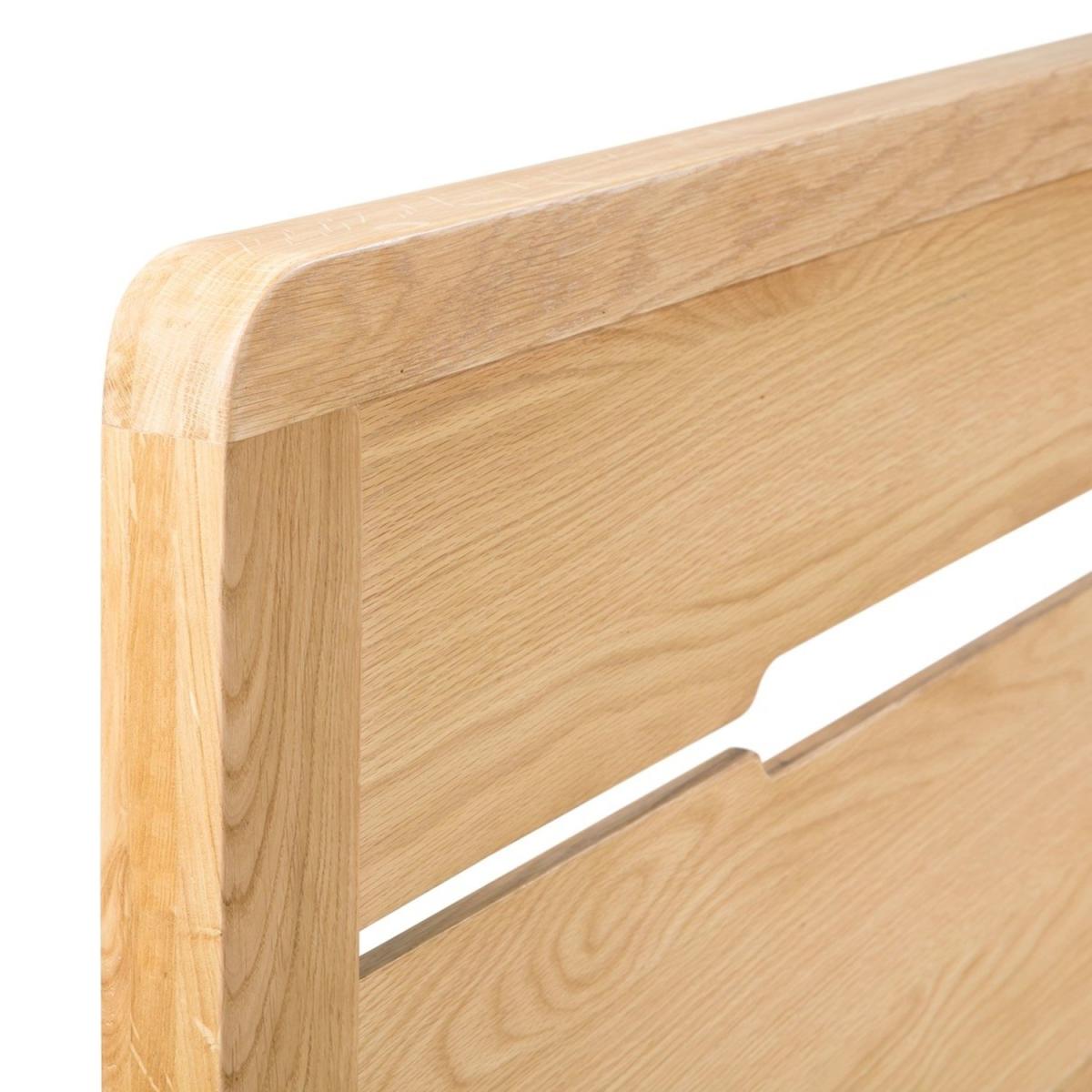 Dimensions H105 x W146 x D202cm Features. Constructed using solid white oak and oak veneers. Recessed handle styled headboard. Solid wooden slatted base Curved edging. Part of Julian Bowen's Curve range..