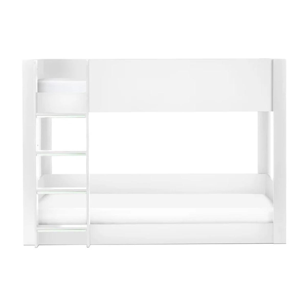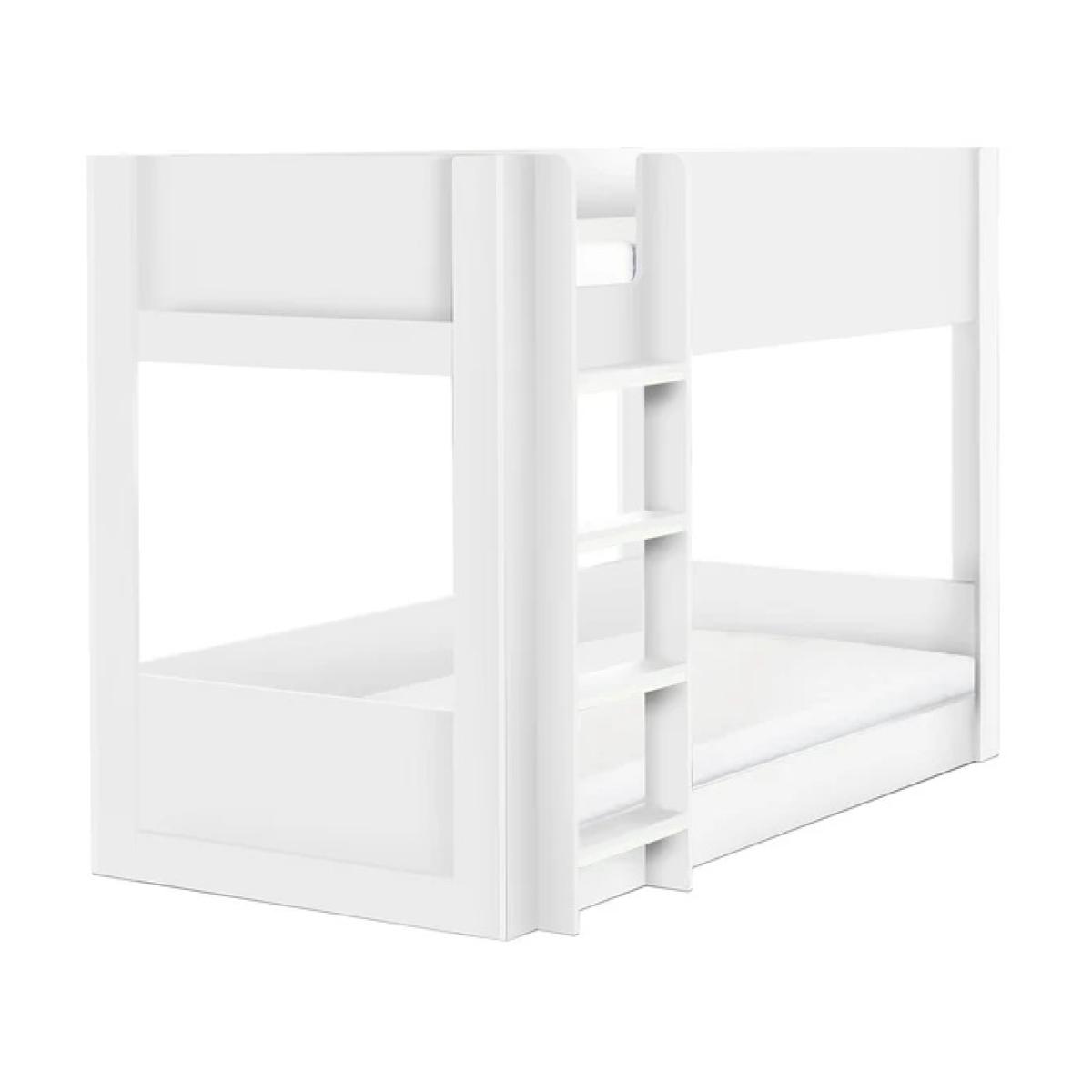 Clean, crisp, and effortlessly modern — the Julian Bowen Solomon Bunk Bed in White brings a fresh twist to the classic industrial style. With its sleek white metal frame, this bunk bed is as stylish as it is functional, making it the perfect centrepiece for contemporary kids’ rooms or minimalist guest spaces. Designed for both safety and durability, the Solomon bunk features a sturdy metal structure, solid slatted bases for excellent mattress support. The space-saving vertical design is ideal for shared bedrooms, giving siblings or guests a comfortable place to sleep without compromising on floor space. Blending modern simplicity with subtle industrial flair, the Solomon Bunk Bed in White fits seamlessly into a range of interiors — from Scandi chic to modern farmhouse. Features: Modern industrial design with a fresh white finish and wood-effect accents Sturdy metal frame with solid slatted bases for support and airflow Fixed ladder and top bunk safety rails for added security Ideal for shared rooms, guest spaces, or growing families Fits two standard UK single mattresses (90 x 190 cm) Home Assembly Required Dimensions: Height 140.5cm Width 98.2cm Length 199.4cm All screens vary in colour reproduction and whilst every effort has been made to display the colour as accurately as possible it is for guidance only.