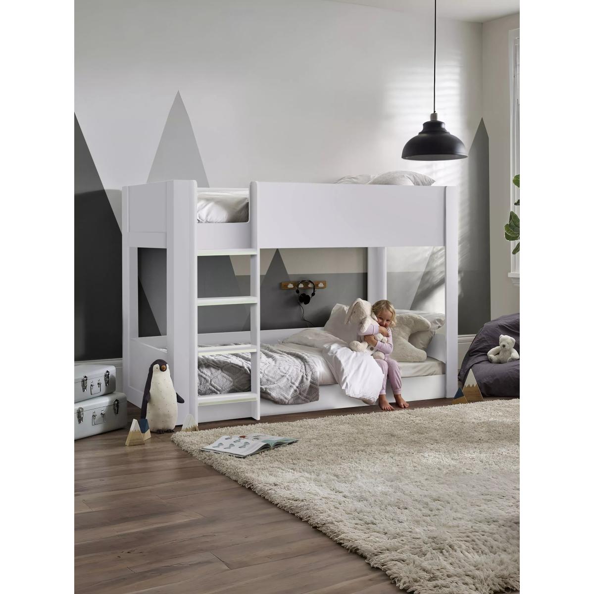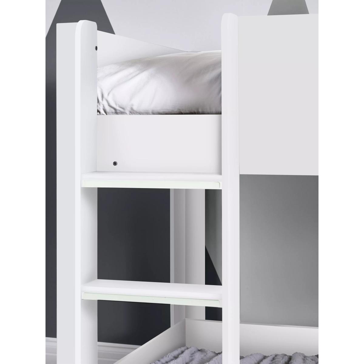 Transform your child's room into a cosy haven with the Solomon Bunk Bed. The sleek white finish seamlessly complements any decor, setting the stage for a stylish and inviting space. The standout feature of this bunk bed is the playful glow-in-the-dark steps, turning bedtime into an enchanting adventure while ensuring safe access to the top bunk. Crafted with safety as a top priority, this bunk bed features a boarded headboard and footboard, offering an extra layer of security for your little ones.