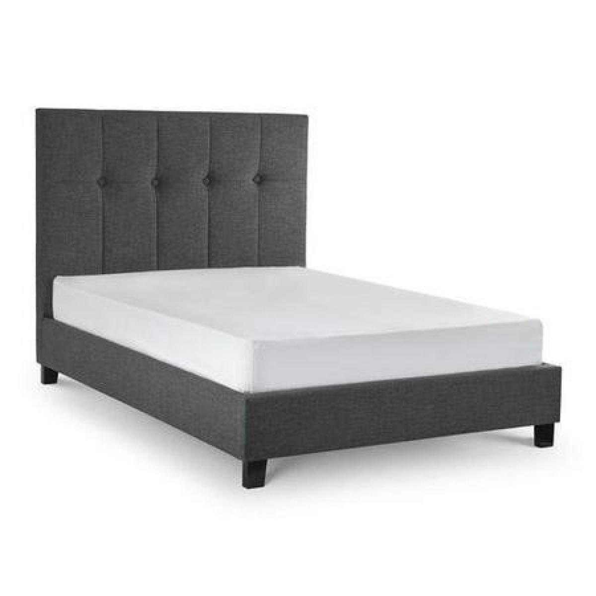 . The Sorrento range delivers contemporary modern style furniture for your bedroom. The high headboard bed is upholstered in a slate grey linen fabric with diamond shaped button detail. The headboard is padded making reading or breakfast in bed more comfortable. This bed is perfect for anyone with modern and contemporary tastes who doesn't want to compromise on comfort. Dimensions. H 132 x D 206 x W 146 cm. Features. Fits a standard UK kingsize mattress (150x200cm)Upholstered in slate grey fabric Diamond shaped button detail. Mattress not included. Also available in double..