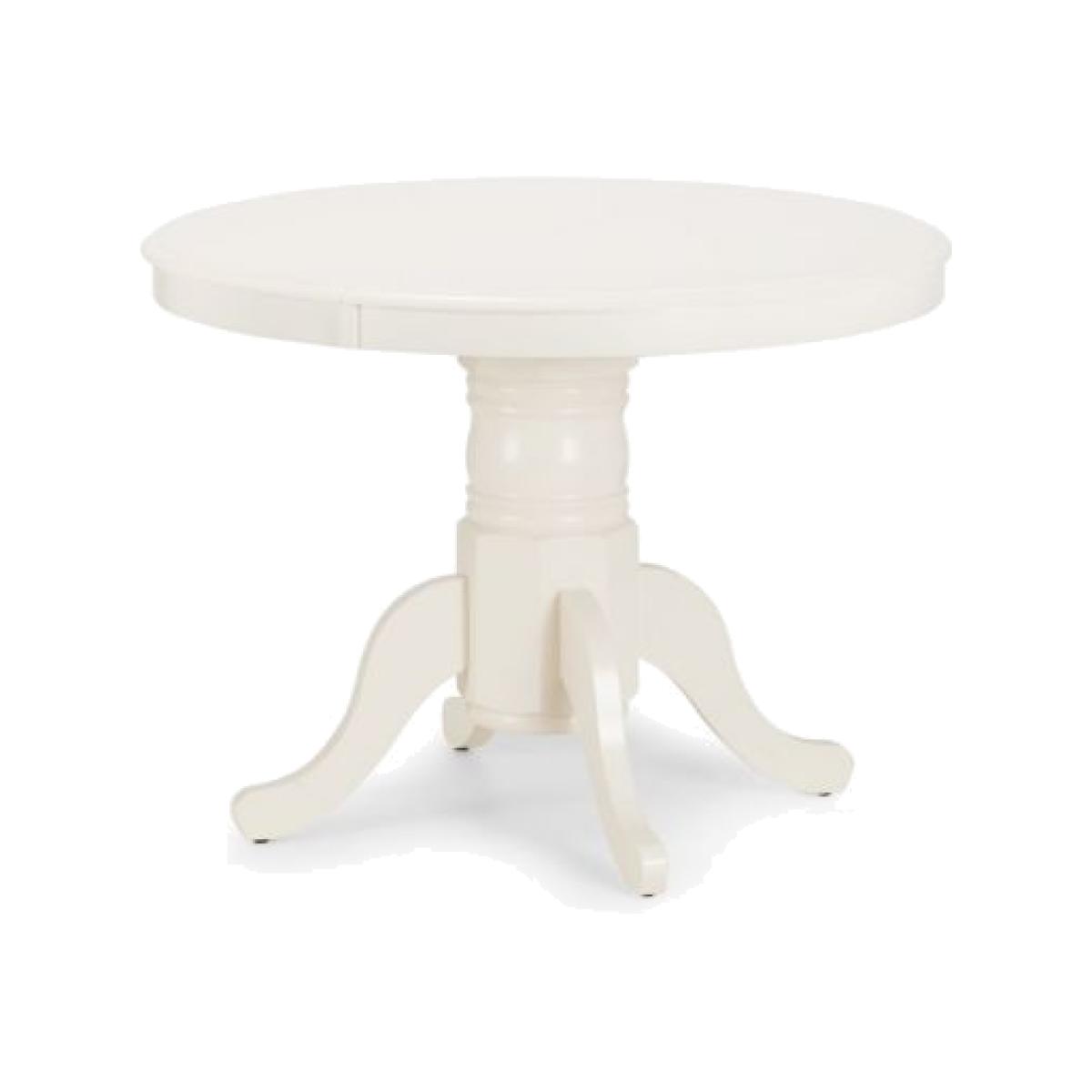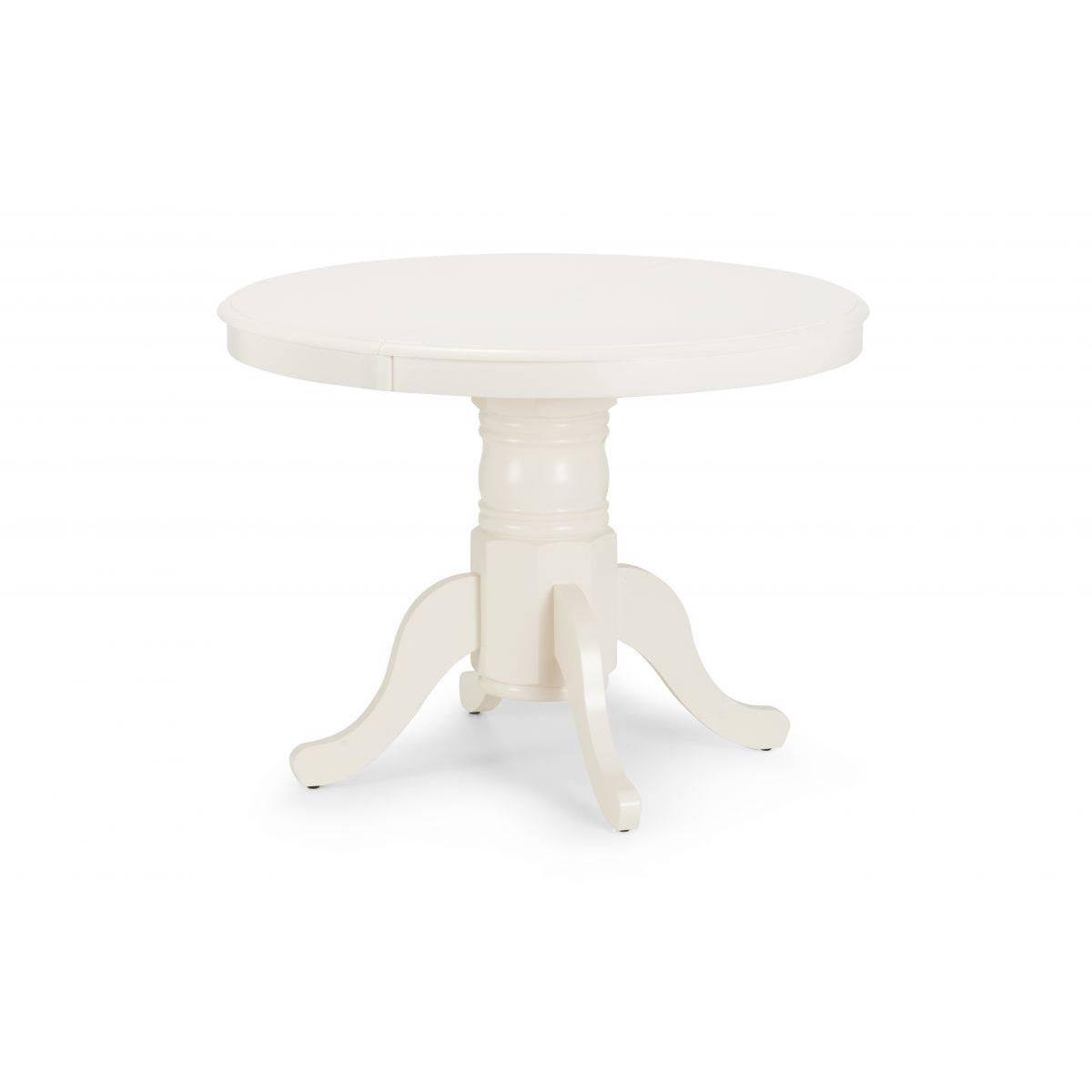 Stanmore is a refined circular dining table with a stylish pedestal base. Finished in a subtle ivory lacquer, Stanmore offers extreme practicality, extending to an attractive oval table that easily seats six diners via an easy-to-use hidden butterfly mechanism. Stanmore is of a timeless design that sits comfortably within traditional and more contemporary interiors.100cm Diameter when closed, extending to 138cmConstructed from MDF and Rubberwood. Dimensions: 138cm (D) x 100cm (W) x 75cm (H)