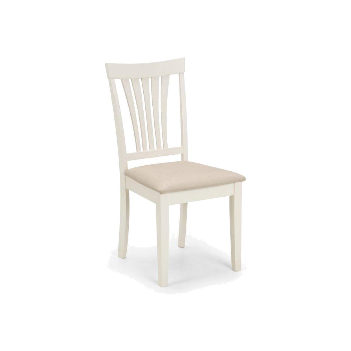 The Stanmore Dining Chair is an elegant fan backed chair finished in a subtle ivory lacquer with a taupe upholstered seat pad. It is of a timeless design that sits comfortably within traditional and more contemporary interiors. Constructed from laquered particleboard and rubberwood. Dimensions: 52.5cm (D) x 44.5cm (W) x 94cm (H)