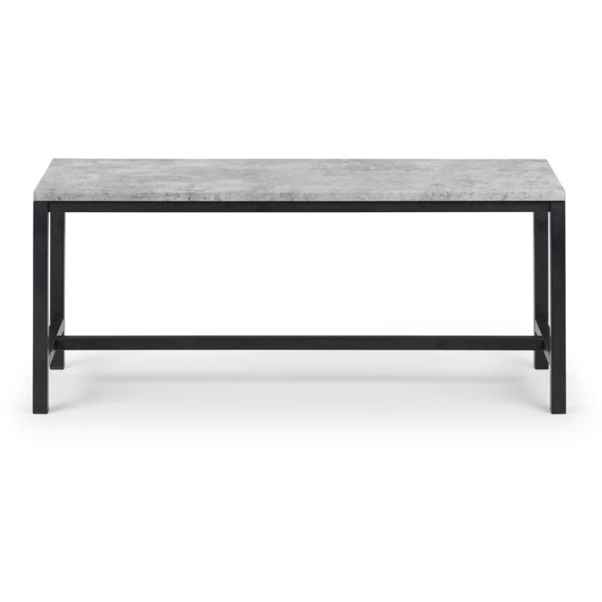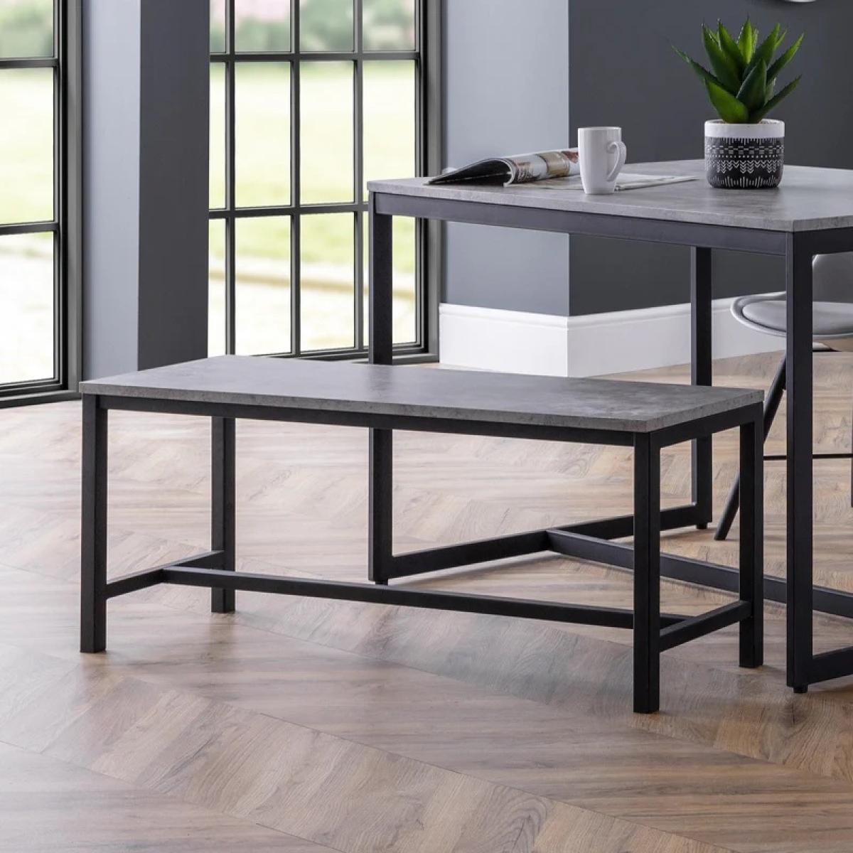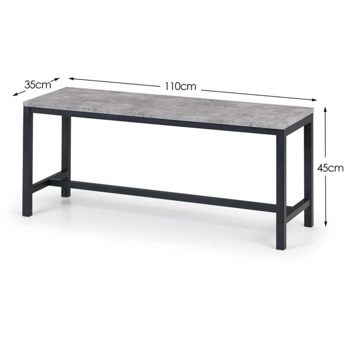 Make a stylish addition to your living space with this Julian Bowen Staten Concrete Bench. With a simple design and a contemporary style, this bench will add a stunning industrial look to any living and dining area. The bench is constructed from a black coated metal frame, complemented by a striking concrete effect top to create a stylish, modern product. With a strong and durable construction, this classic bench will uplift your home Features: Constructed from a black-coated metal frame Complemented by a striking concrete effect top Strong and durable construction Home Assembly Required Dimensions: Height 45cm Width 110cm Depth 36cm All screens vary in colour reproduction and whilst every effort has been made to display the colour as accurately as possible it is for guidance only.